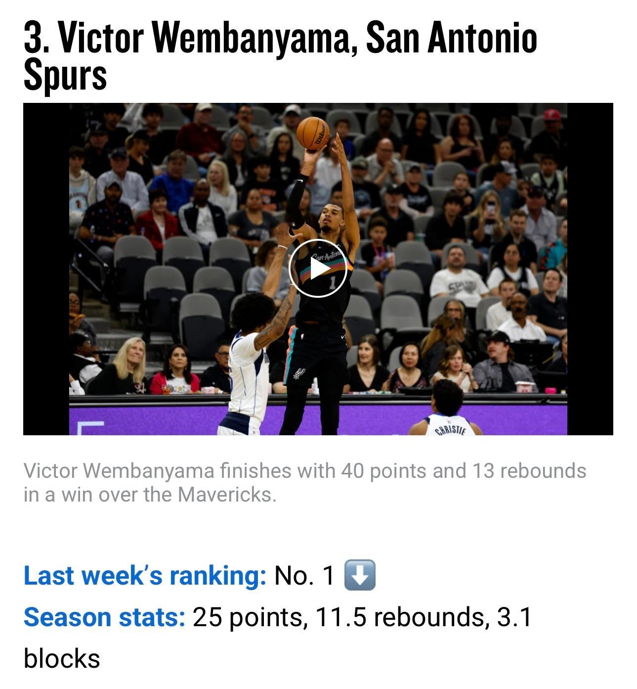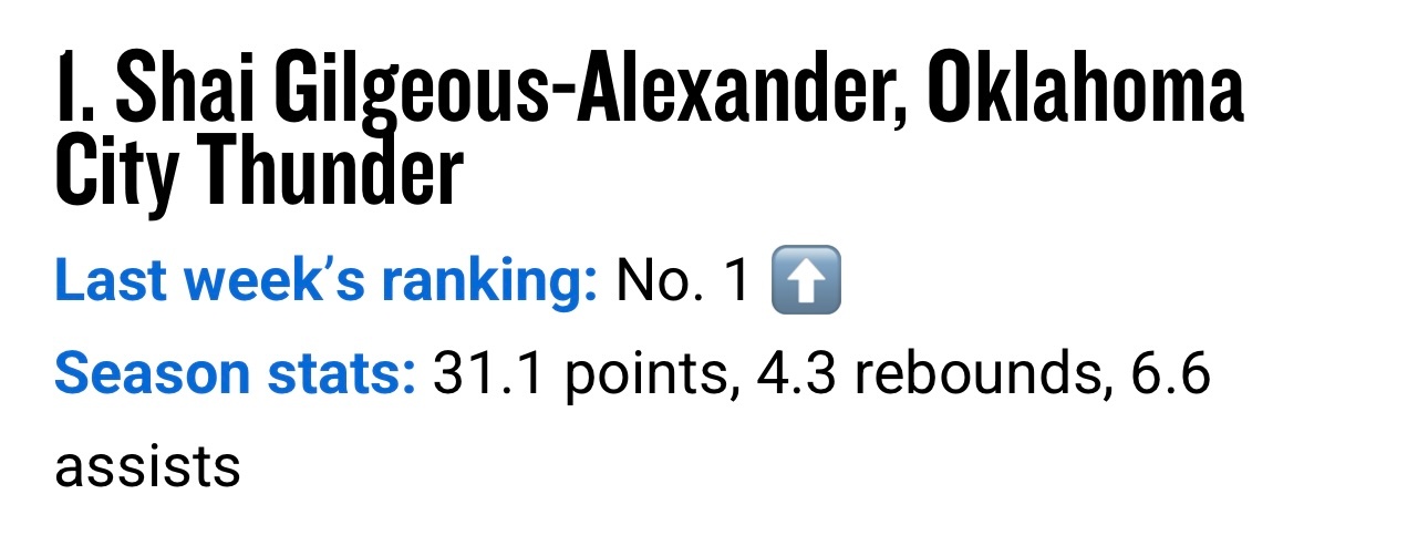 常规赛最后一期MVP排行榜公布,亚历山大第1,约基奇第2,文班亚马第3。4-10