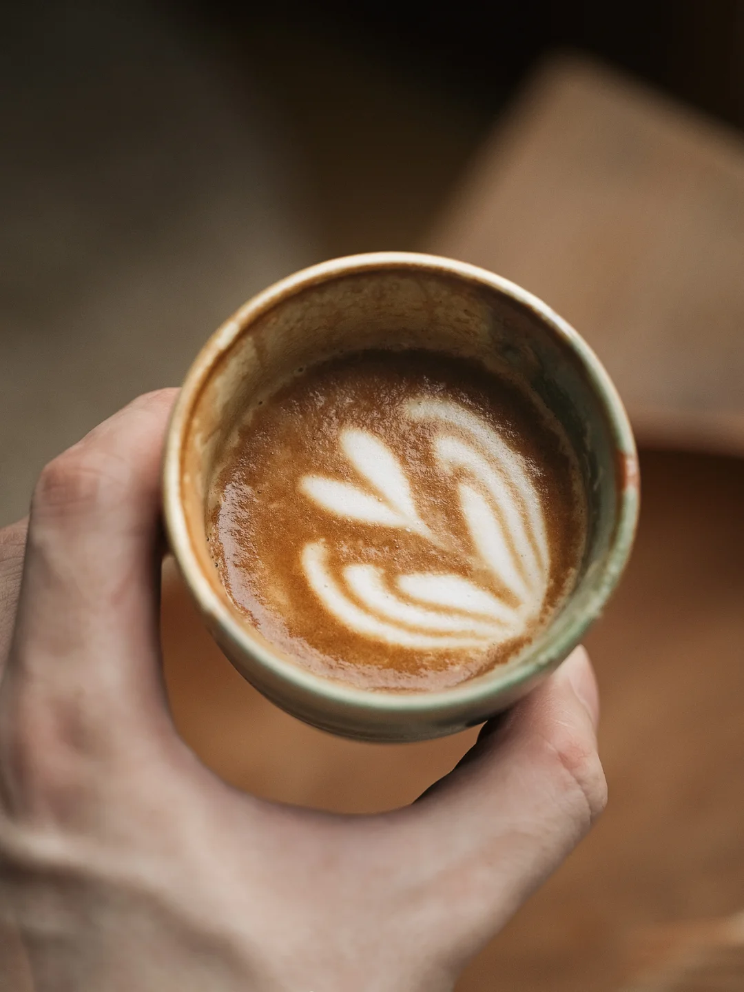 ❷打发较薄奶泡,融合8分满拉花即可