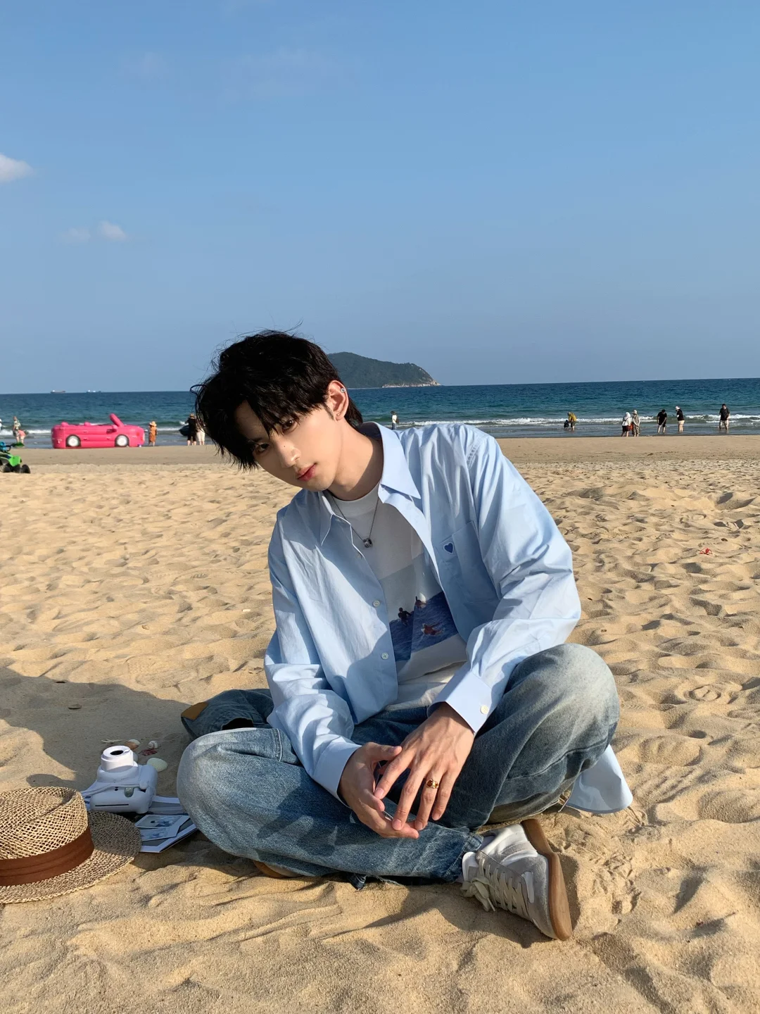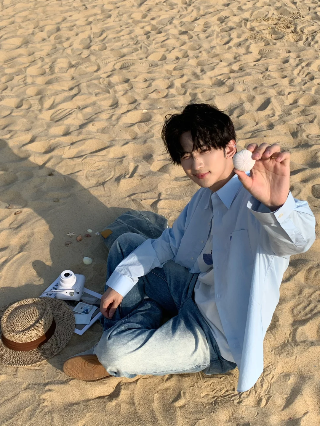 在海边捡贝壳