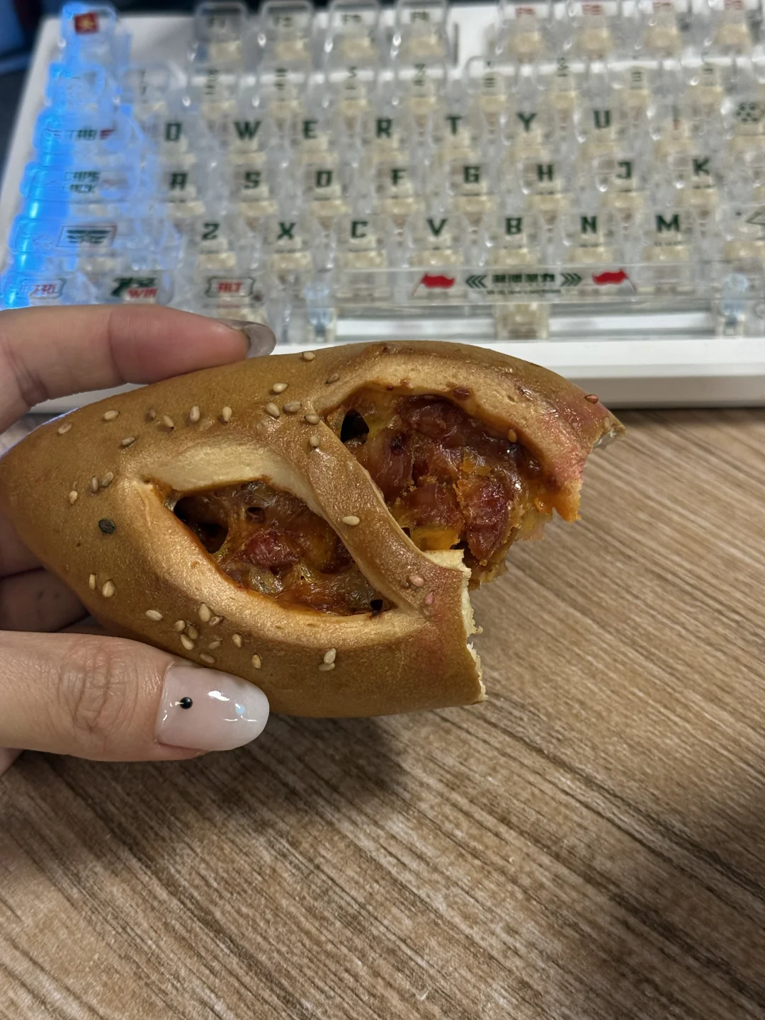 下午吃了个肉松碱水很好吃(๑´ڡ`๑)
