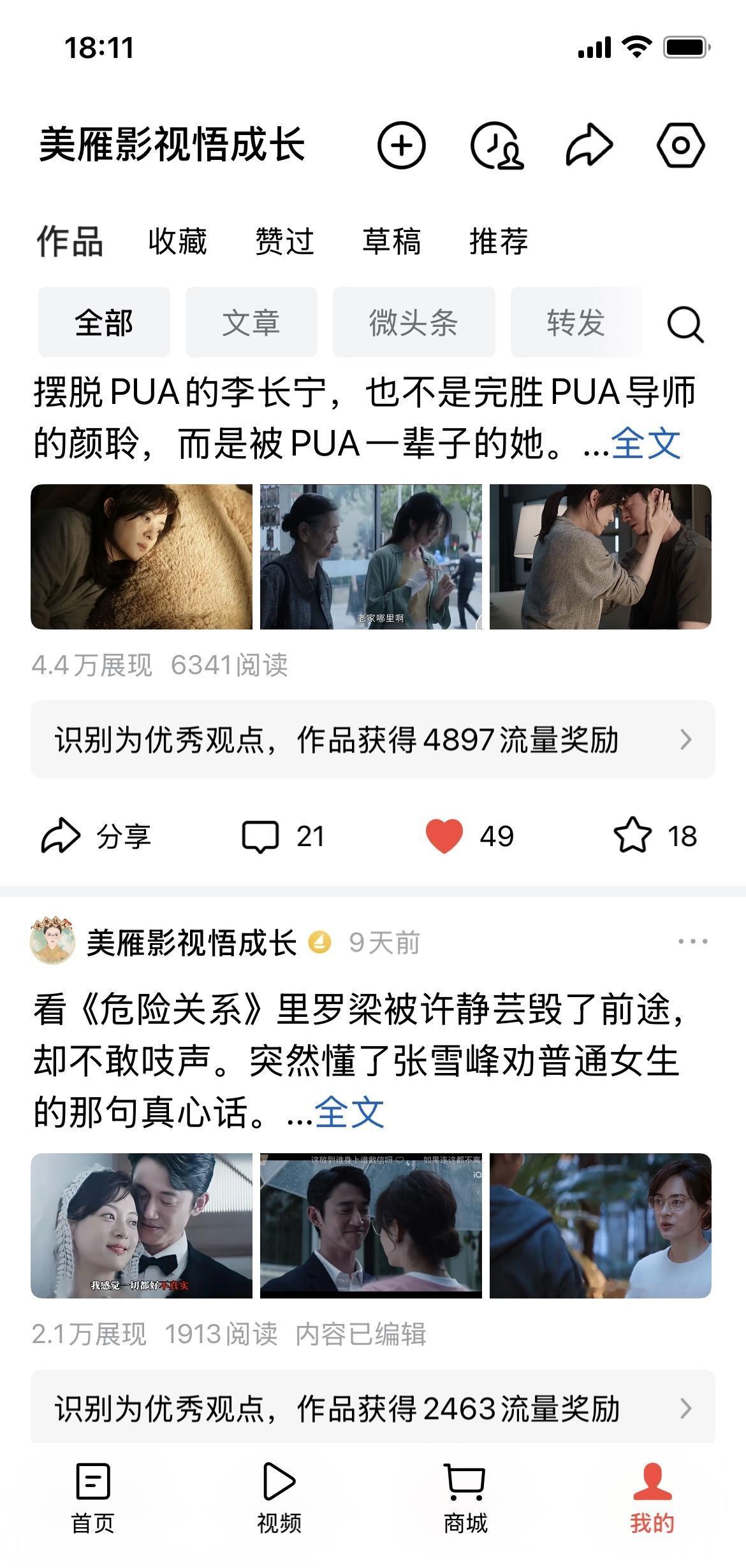 今天,我惊喜地发现,最近10天发布的微头条,7篇被平台标注了:“识别为优秀观点,作品获得流量奖励。”