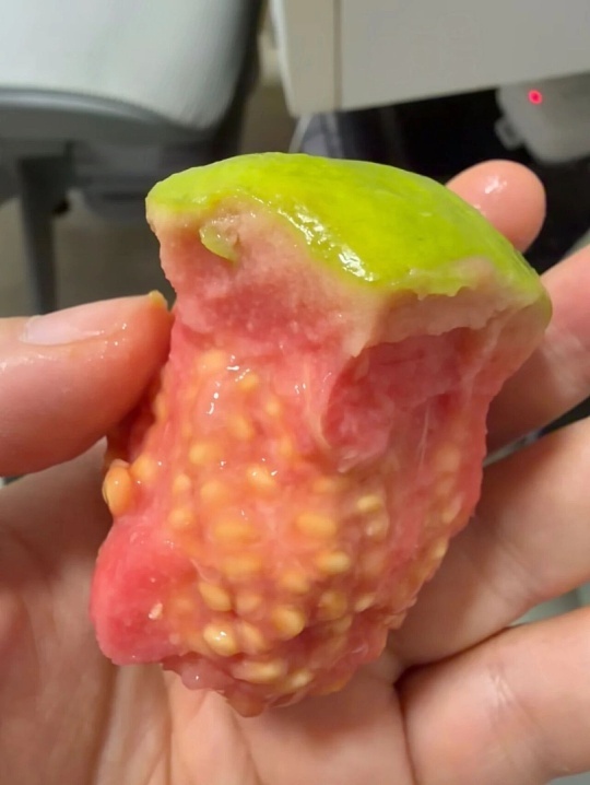 芭乐的籽居然可以一整块掰下来白心奶油芭乐成熟变软后,果芯籽会抱团成型,沿着外圈吃掉果肉就能整块完整掰下来,红心芭乐很难做到,芭乐籽本身可以食用、富含膳食纤维,不过肠胃敏感人群建议吐掉,避免便秘。