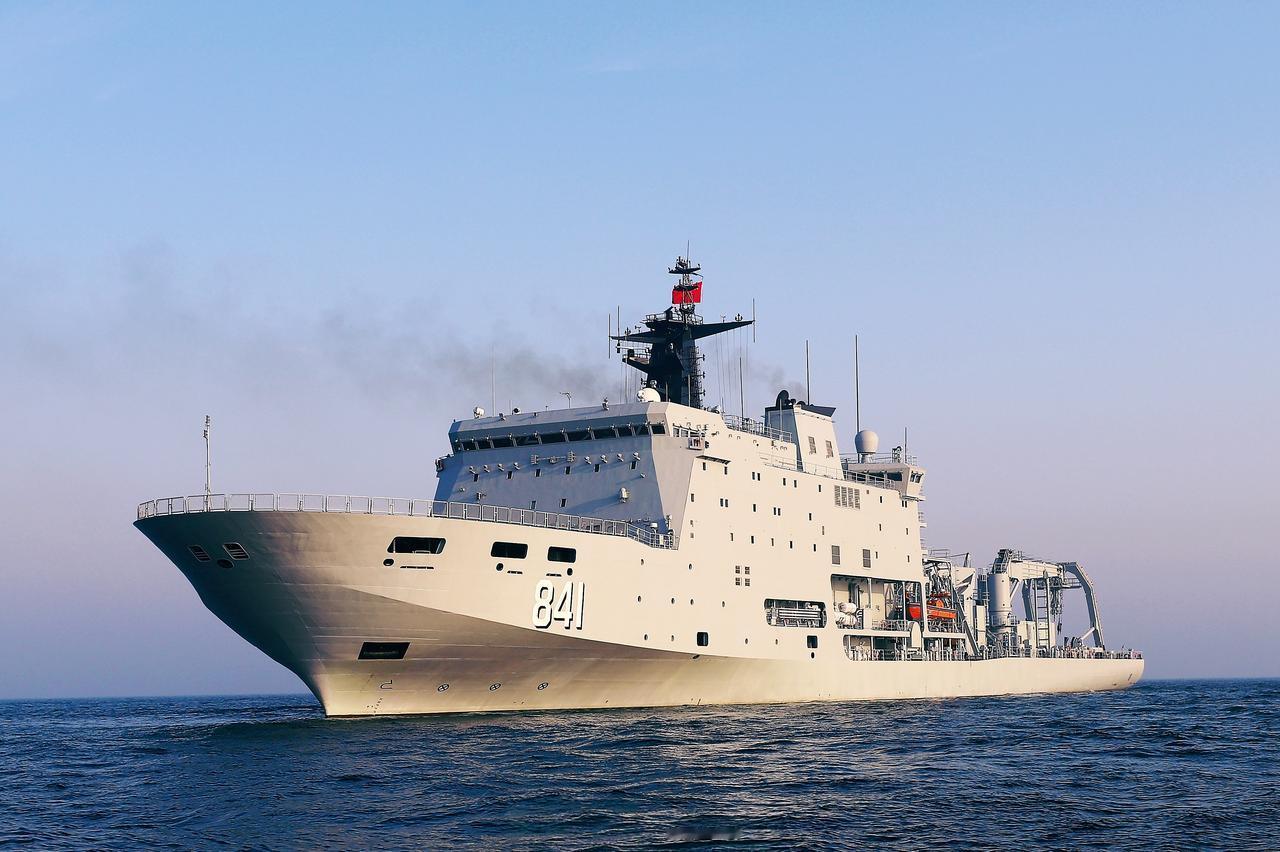从外形看923型和927型(图3为841“西湖”舰)很像,都是舰艏拥有巨大的直升机起降甲板。但927型定位为潜艇救生船,配有LR-7深潜救生艇,这点是923型不具备的。而且927型更大,满载排水量达到1.4万吨。