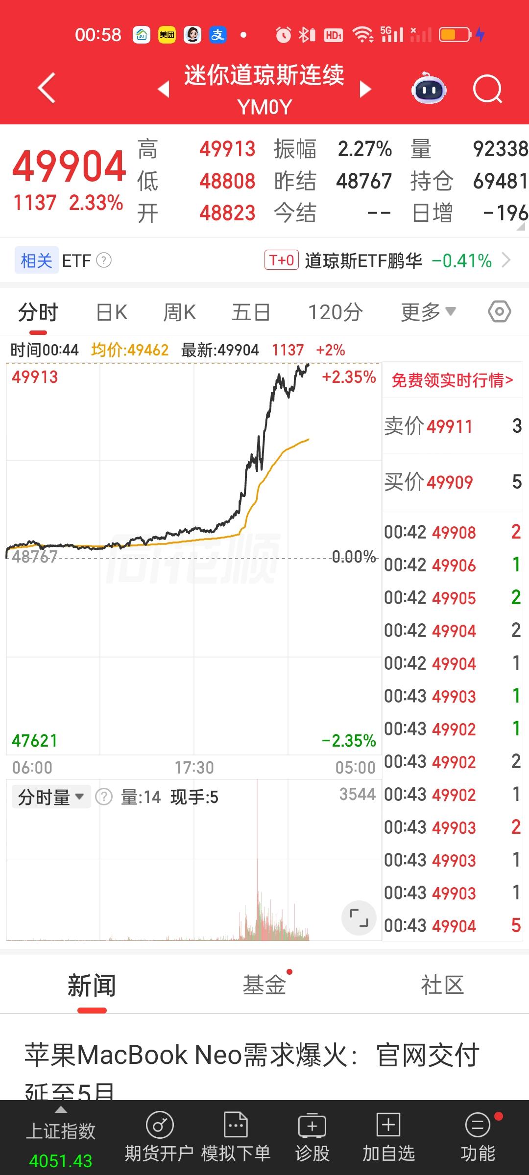 此时此刻,外围市场彻底爆了。美股纳指,标普500再创新高,道指暴涨近1200点,连带着富时A50,日经225主连,港股期货全部大涨。石油暴跌12%,一夜回到解放前。如果是这样,下周行情值得期待啊!