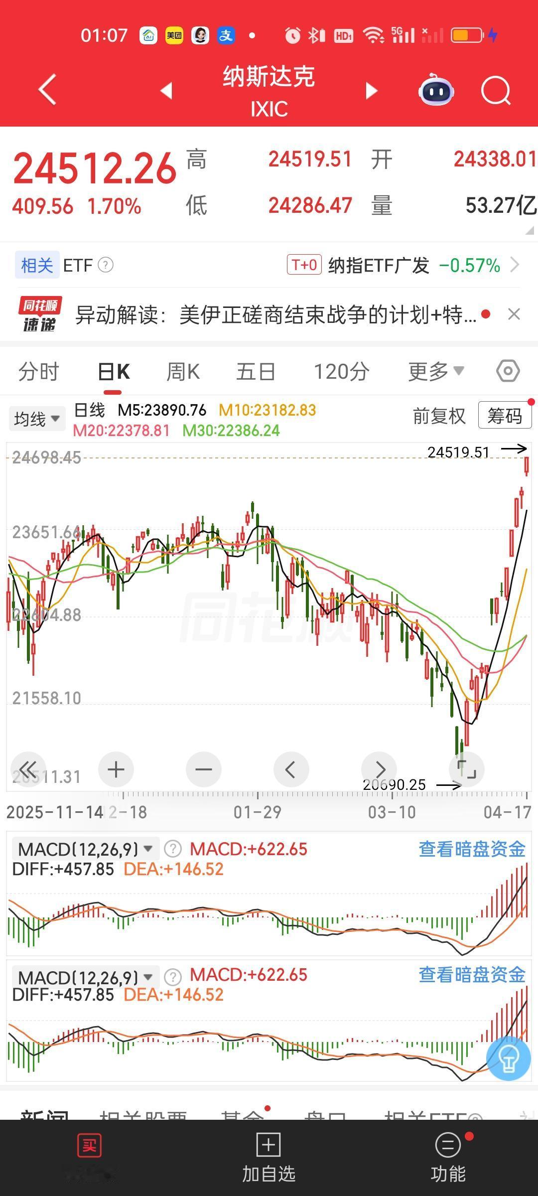 此时此刻,外围市场彻底爆了。美股纳指,标普500再创新高,道指暴涨近1200点,