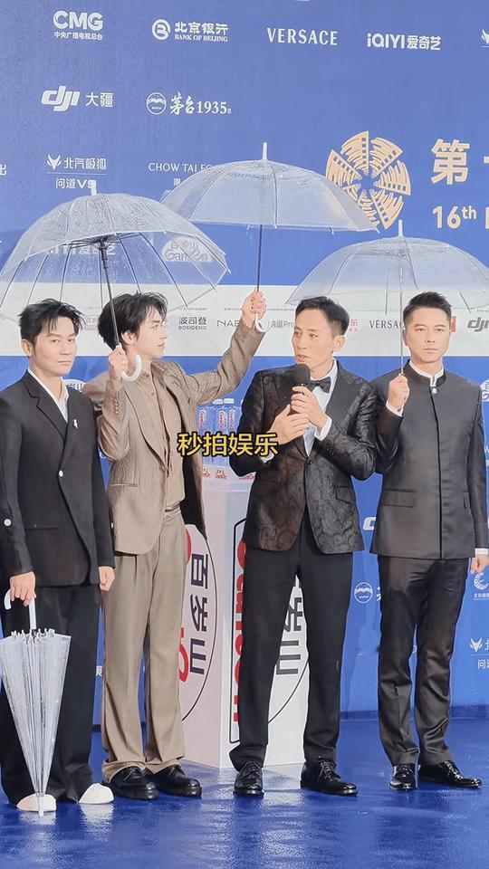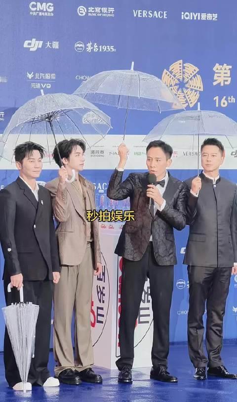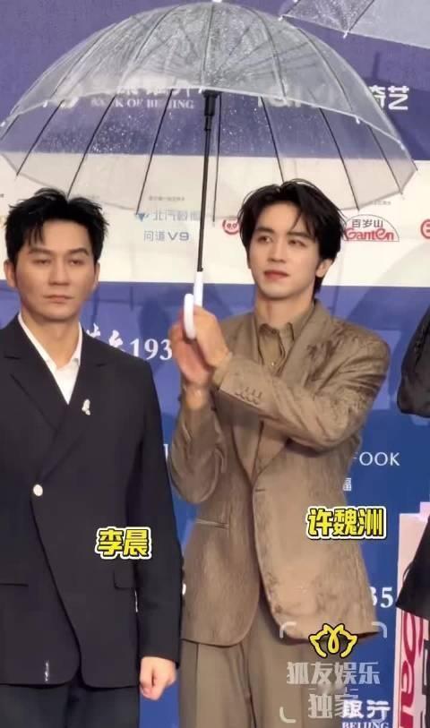 笑不活了!许魏洲内心os:撑完你的撑你的。昨天北影节红毯,许魏洲给李晨刘烨撑伞忙