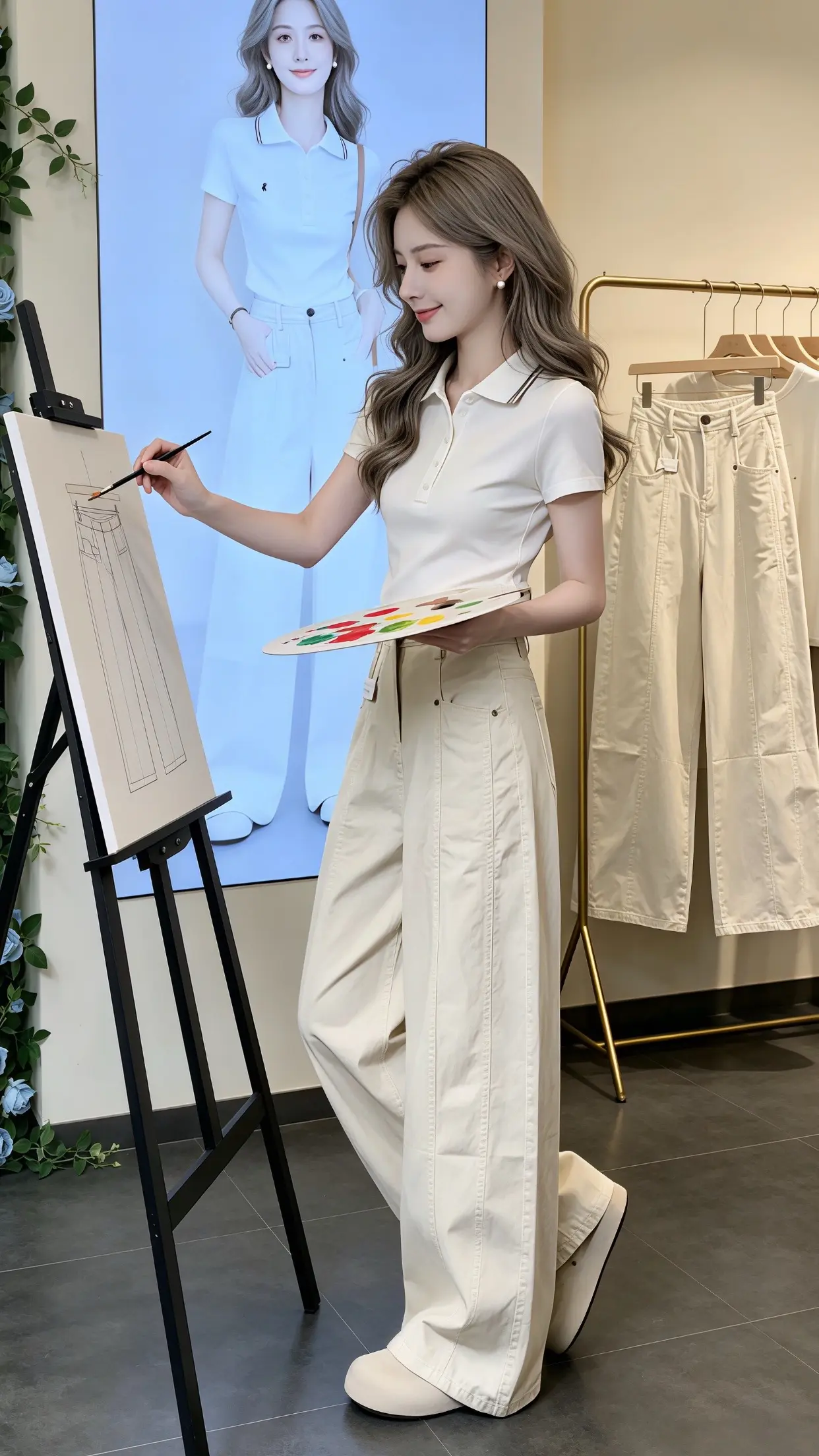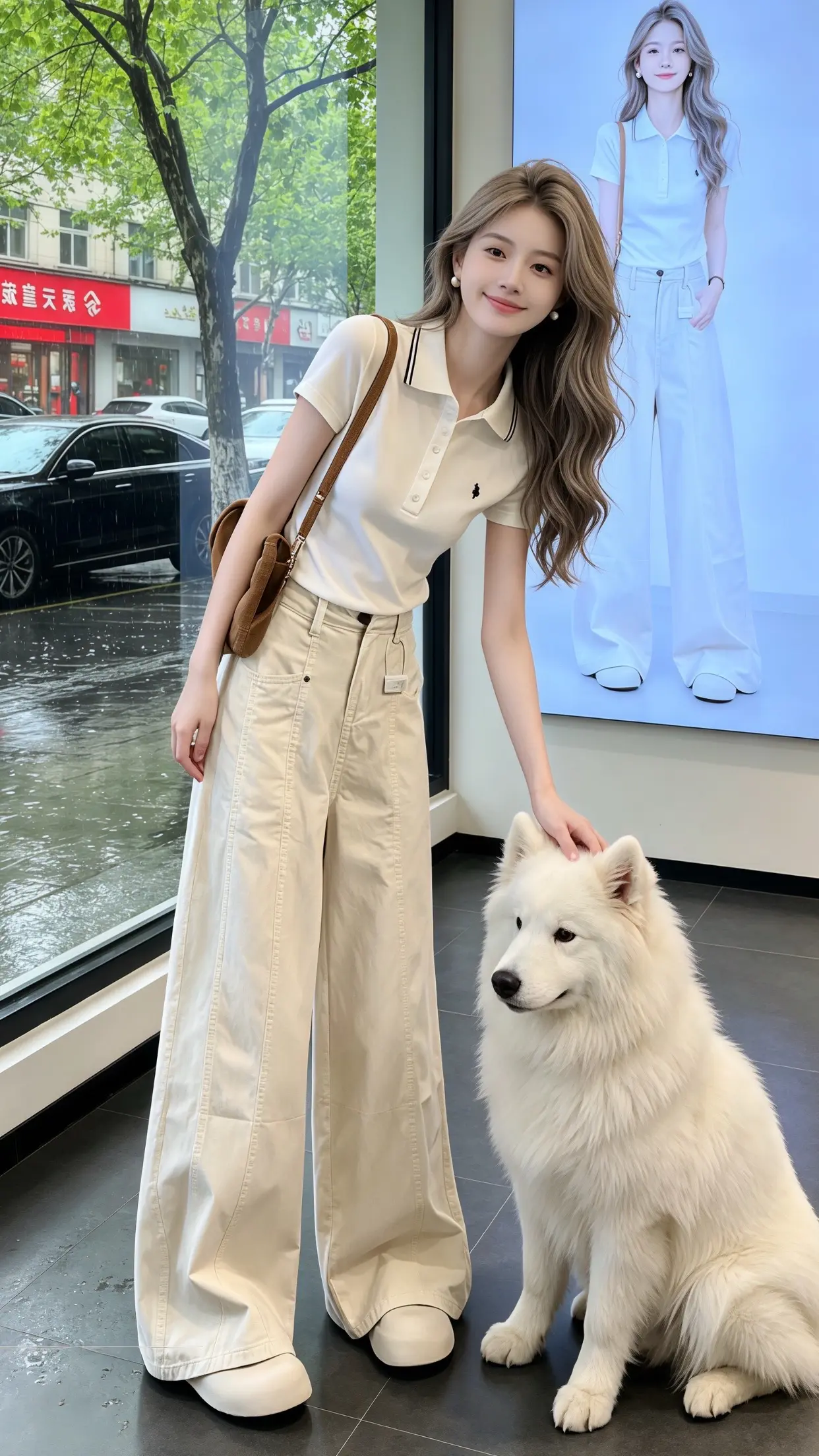 回头率超高的时髦老钱风!这组大地色系穿搭太绝了,浅咖针织Polo衫搭配藏青阔腿