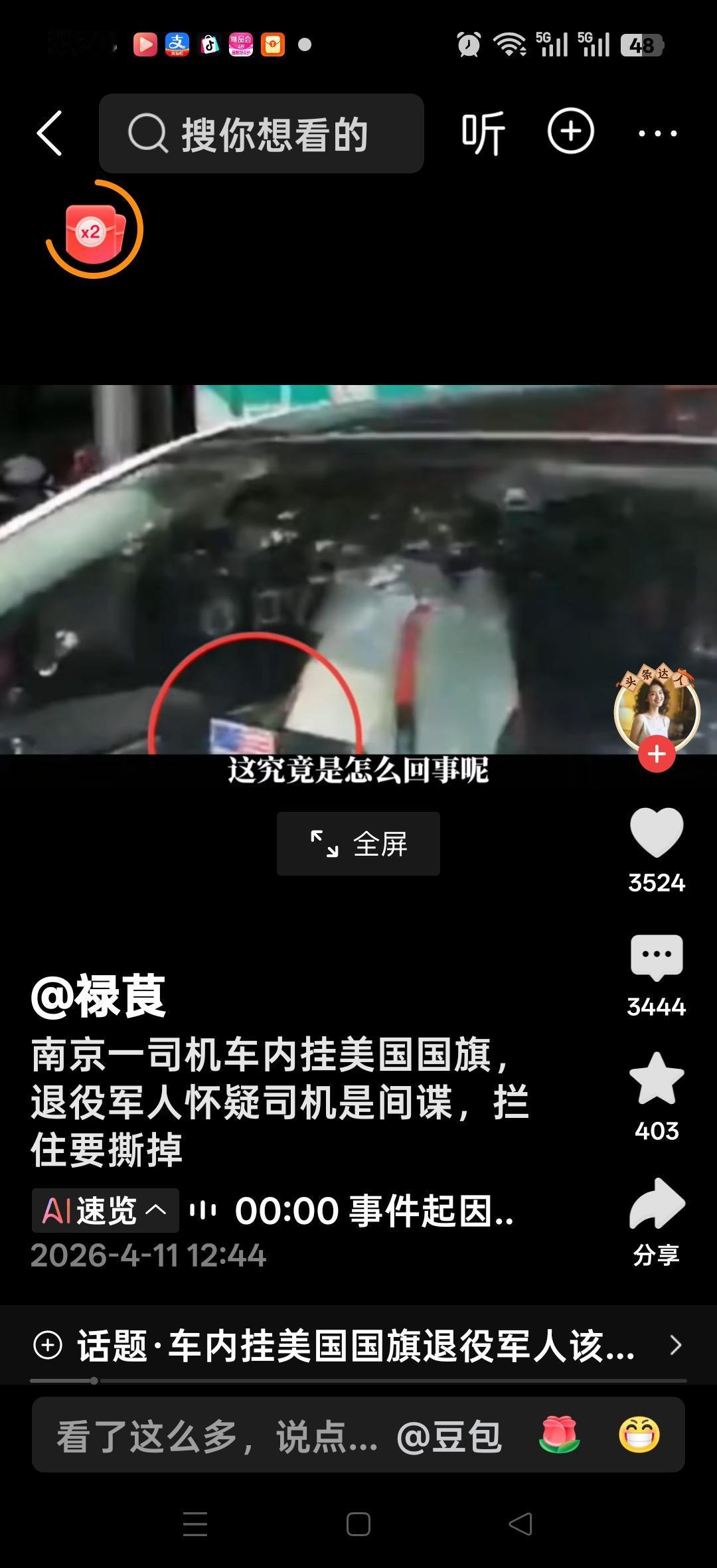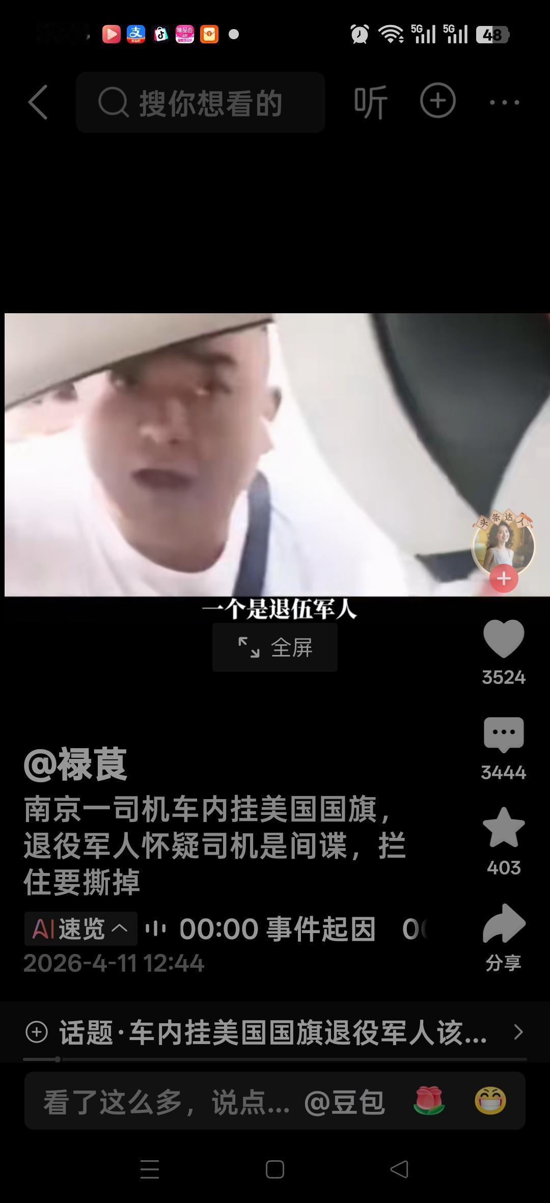 南京一司机在车内挂美国国旗,退役军人怀司机是间谍,拦住要撕掉。网友说:为退伍军人