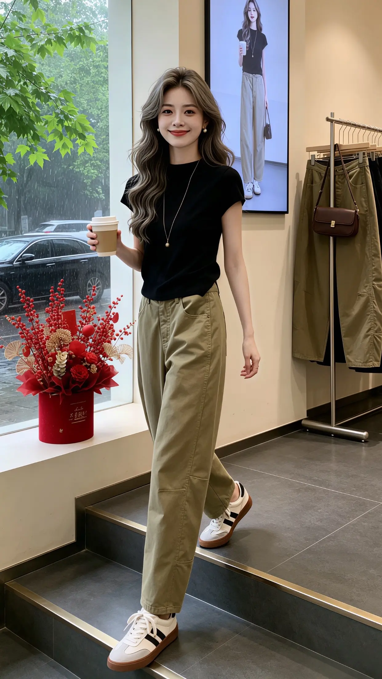 回头率超高的时髦老钱风!这组大地色系穿搭太绝了,浅咖针织Polo衫搭配藏青阔腿