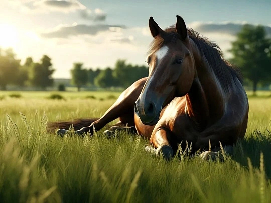 第一次知道原来马也会坐着一直以为马只会站着休息,没想到居然还会乖乖坐着,模样又乖又呆萌,瞬间打破了对马儿的固有印象,也太可爱了吧!