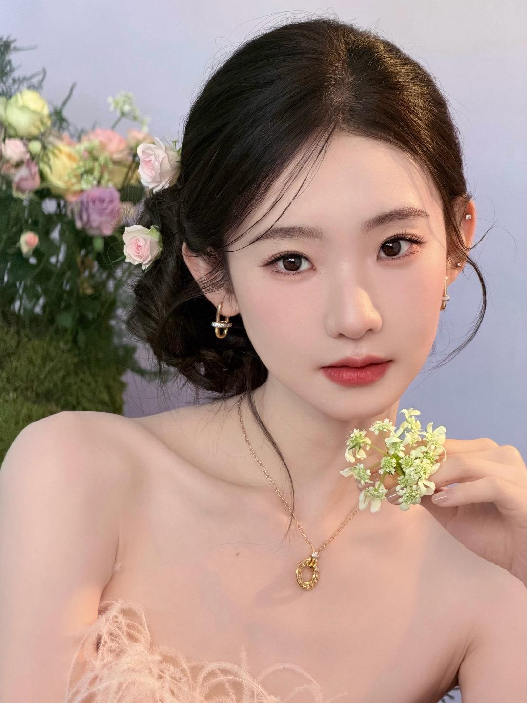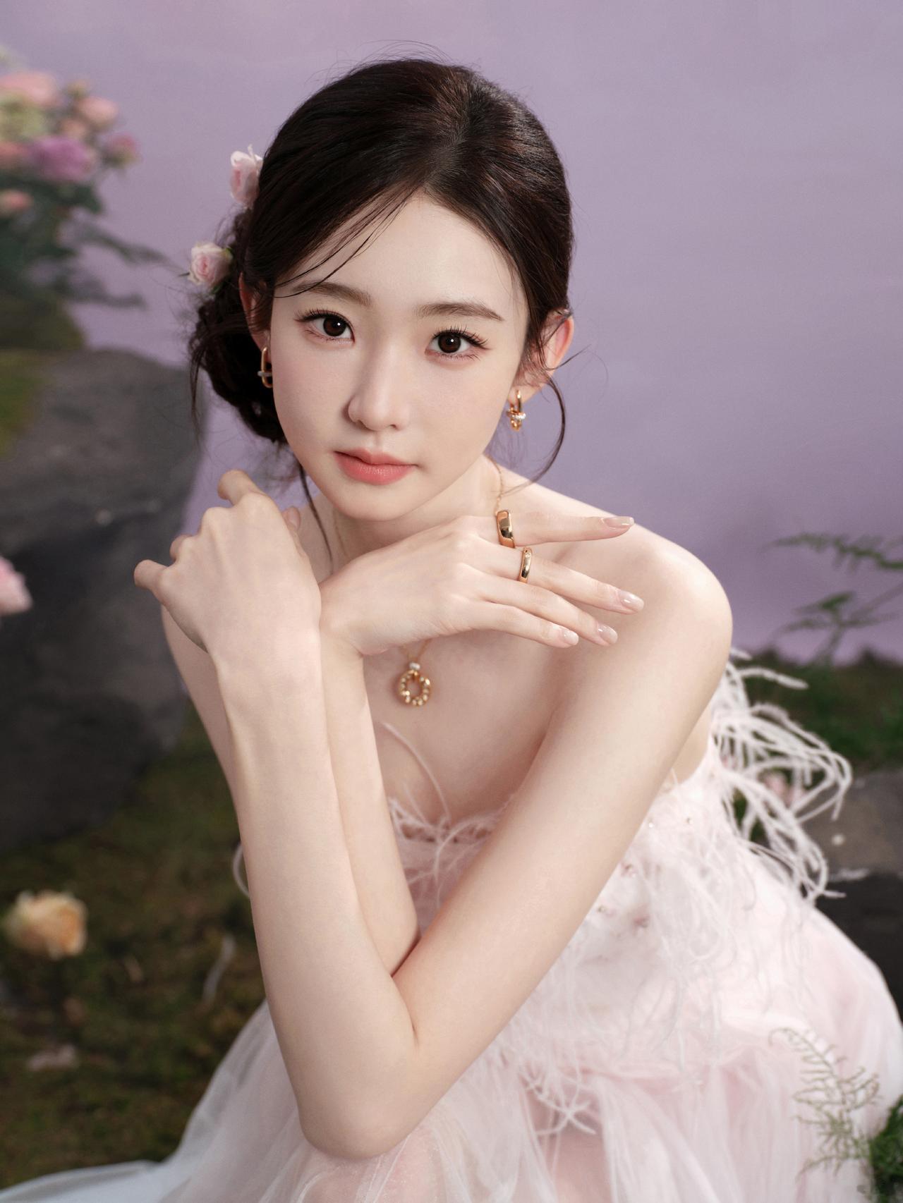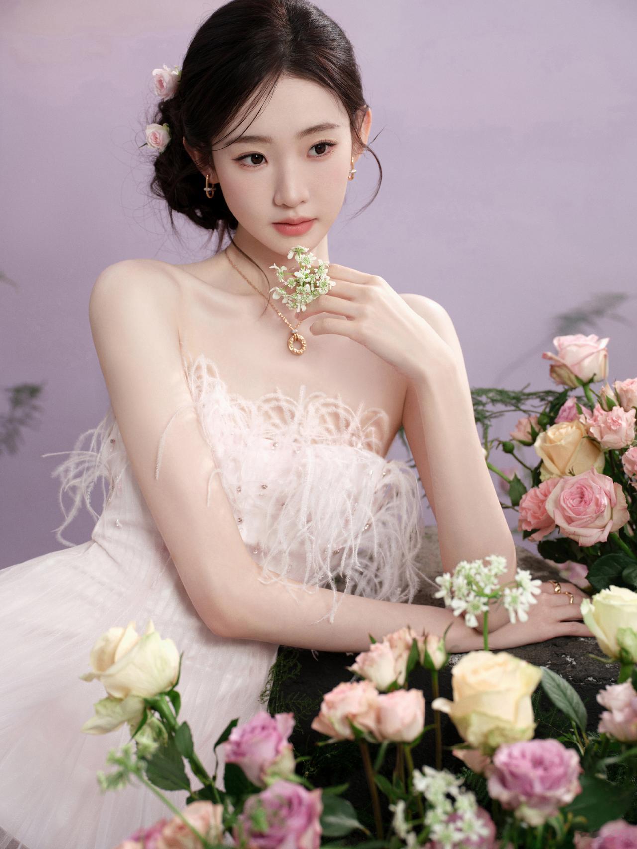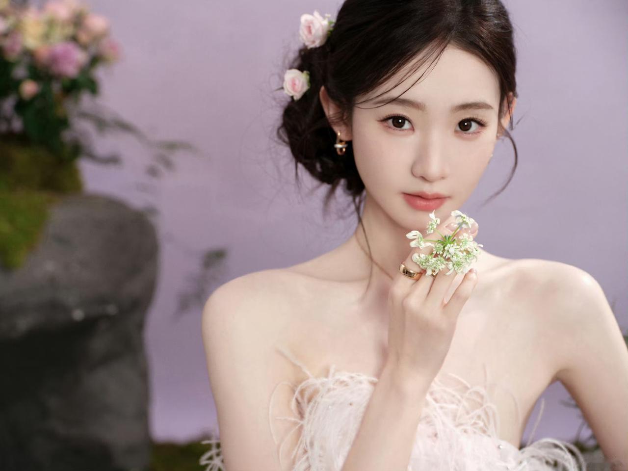 仙气十足!张艺凡身穿渐变抹胸纱裙,在繁花云雾中轻盈灵动,或捧花互动,或温婉凝视,完美演绎了“花间仙子”的梦幻氛围[奸笑]