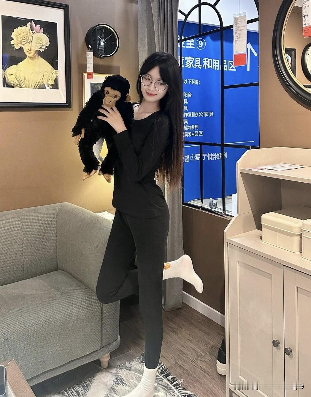 春日生活打卡季黑衣美人抱黑猴,时光静好意自闲。春日生活打卡季