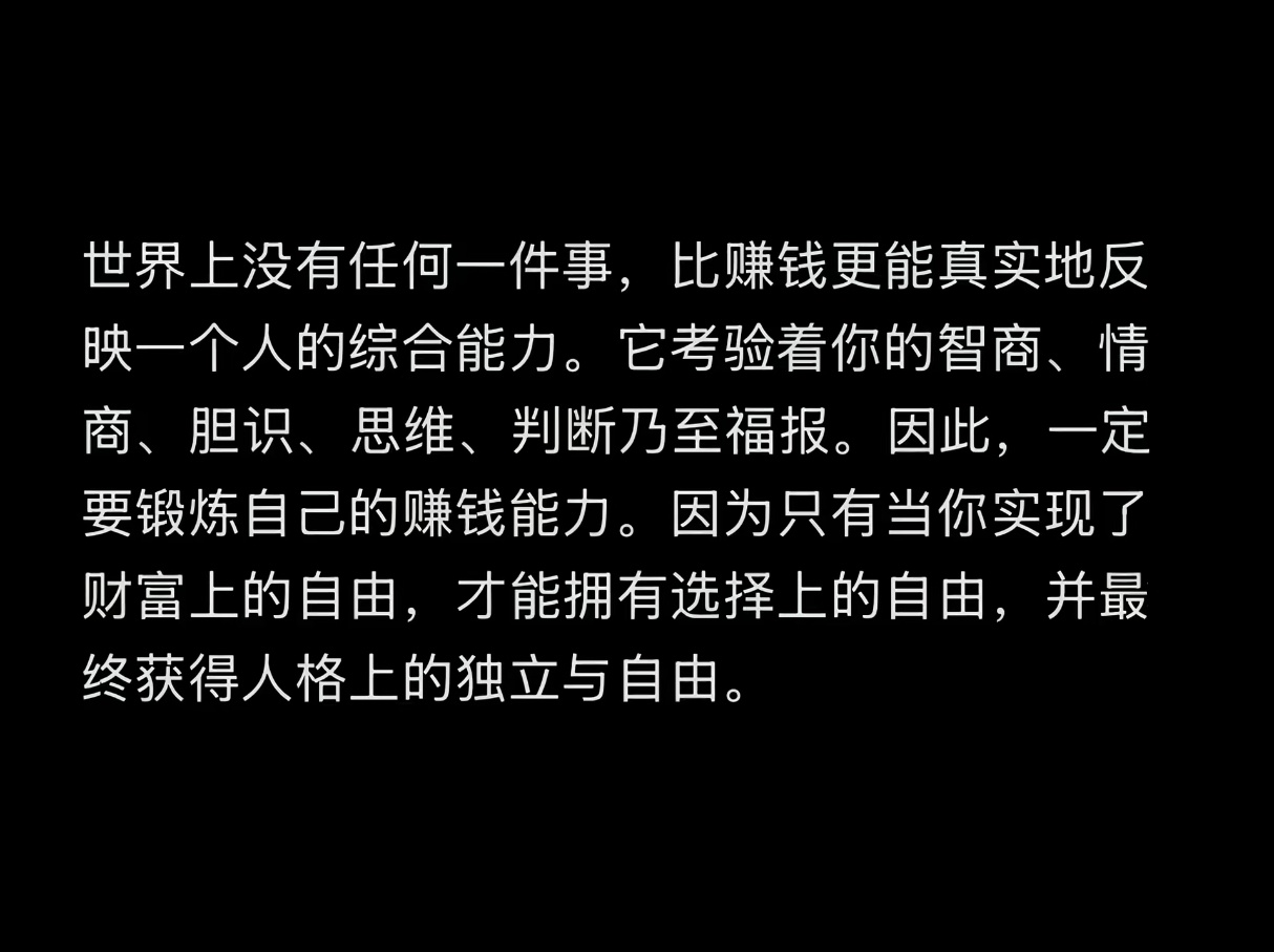 世界上没有任何一件事,比赚钱更能真实的反映一个人的综合能力。