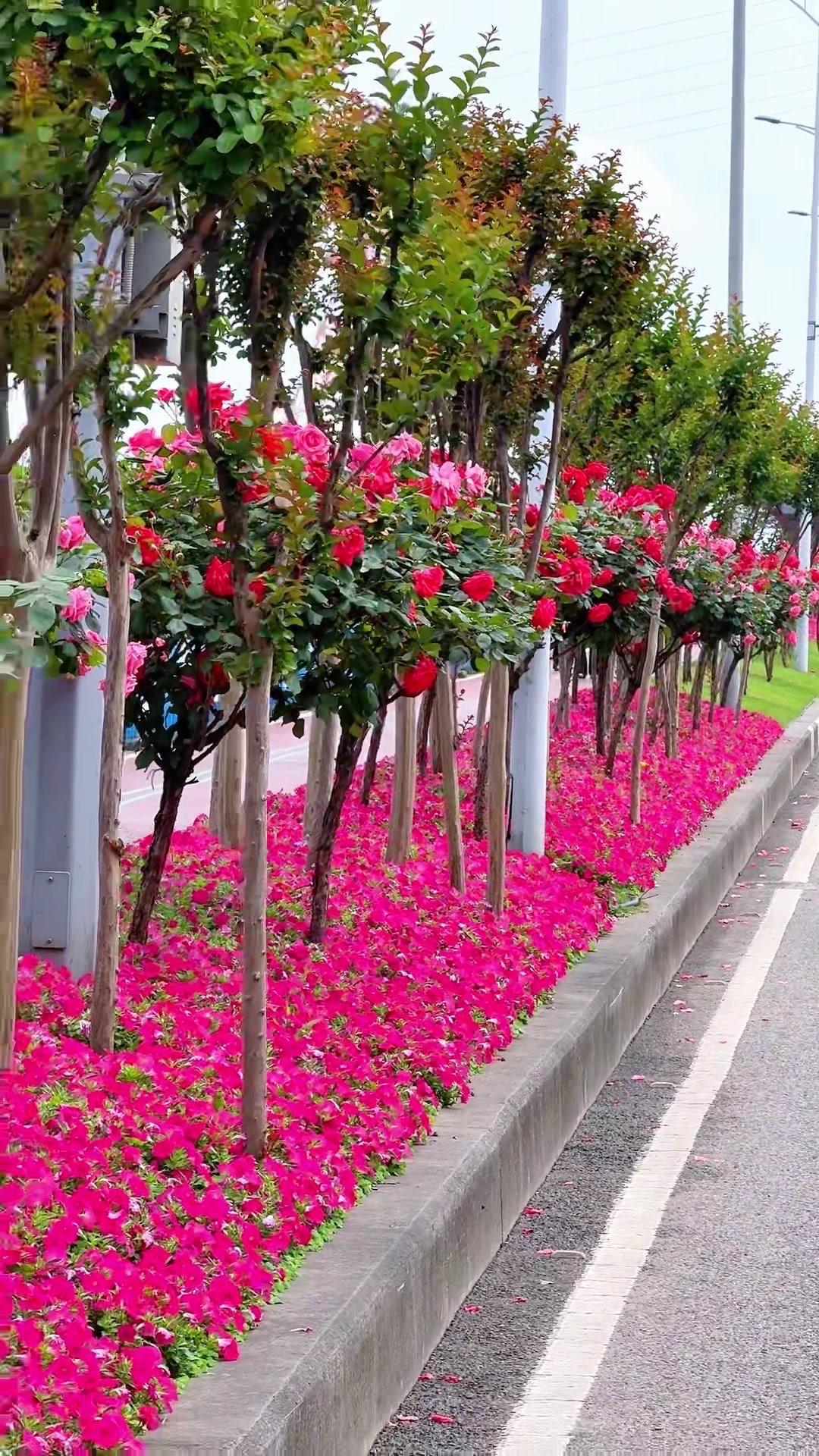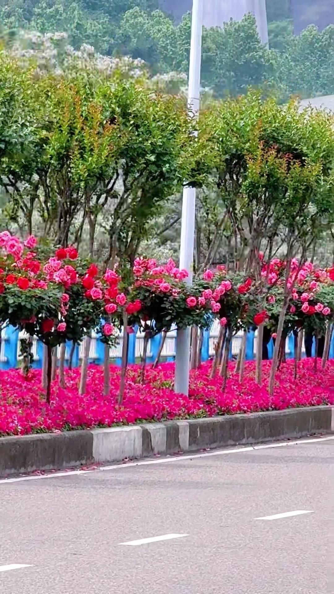 🔥重庆绿化带惊现棒棒糖月季!1️⃣重庆的春天太懂浪漫了,路边绿化带居然种了满街的棒棒糖月季,粉粉嫩嫩的花苞缀满枝头,像把童话里的糖果树搬进了现实~