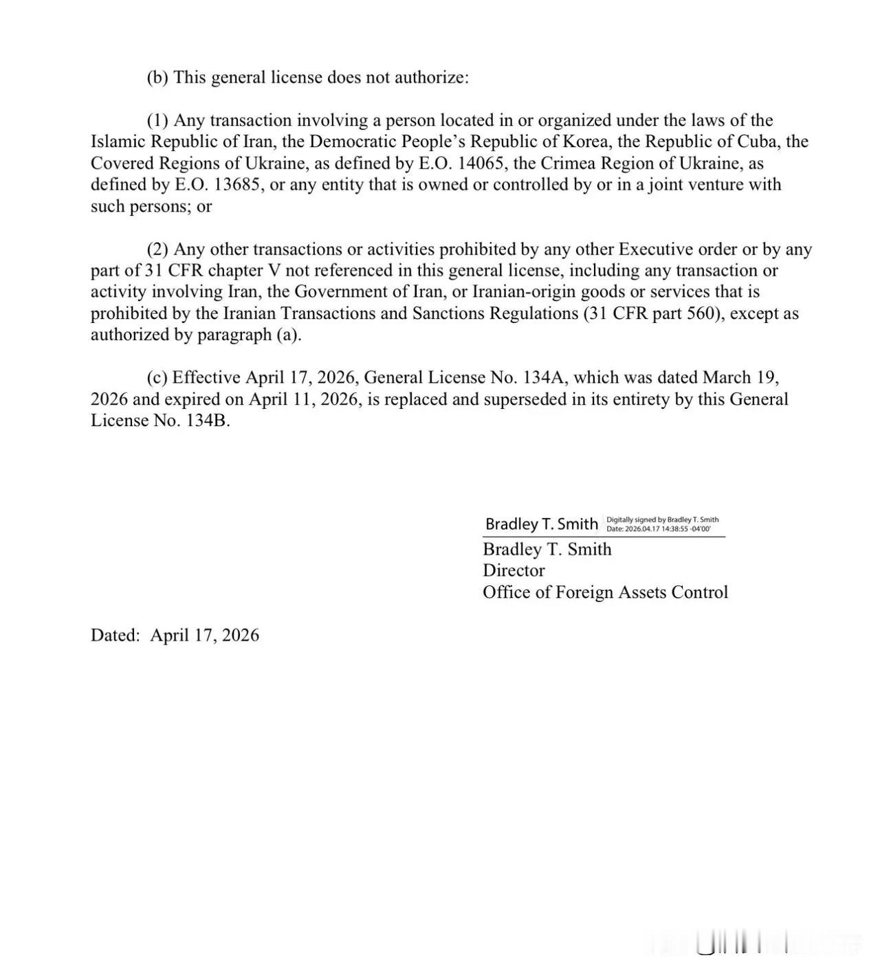 刚刚:贝森特在声称美国不会续签对俄罗斯或伊朗石油的制裁豁免令两天后,其财政部悄然