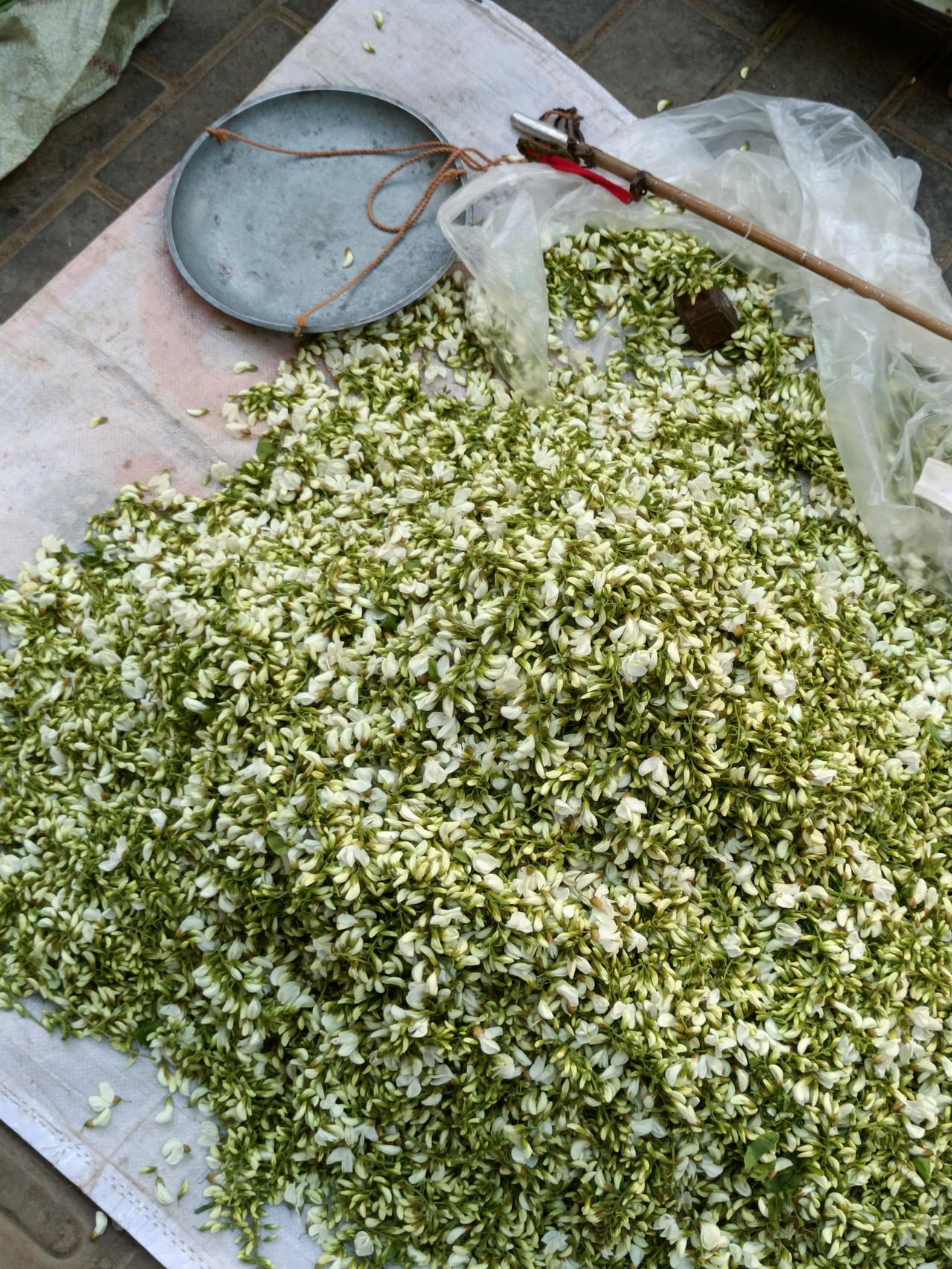 买槐花也有经验,要买这种花还没完全开放的,买回家淘洗几遍,放点面粉做槐花麦饭,这种才香。