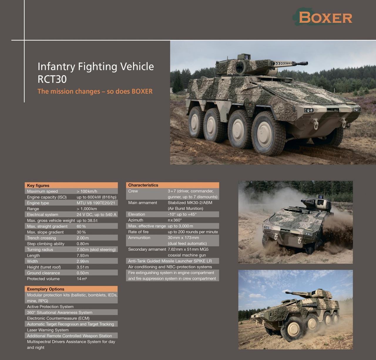 采购是通过欧洲防务机构OCCAR的联合采购机制进行的:德国将接收150辆,而72辆将运往荷兰。第一辆车计划于2027年交付。Schakal - Boxer RCT 30