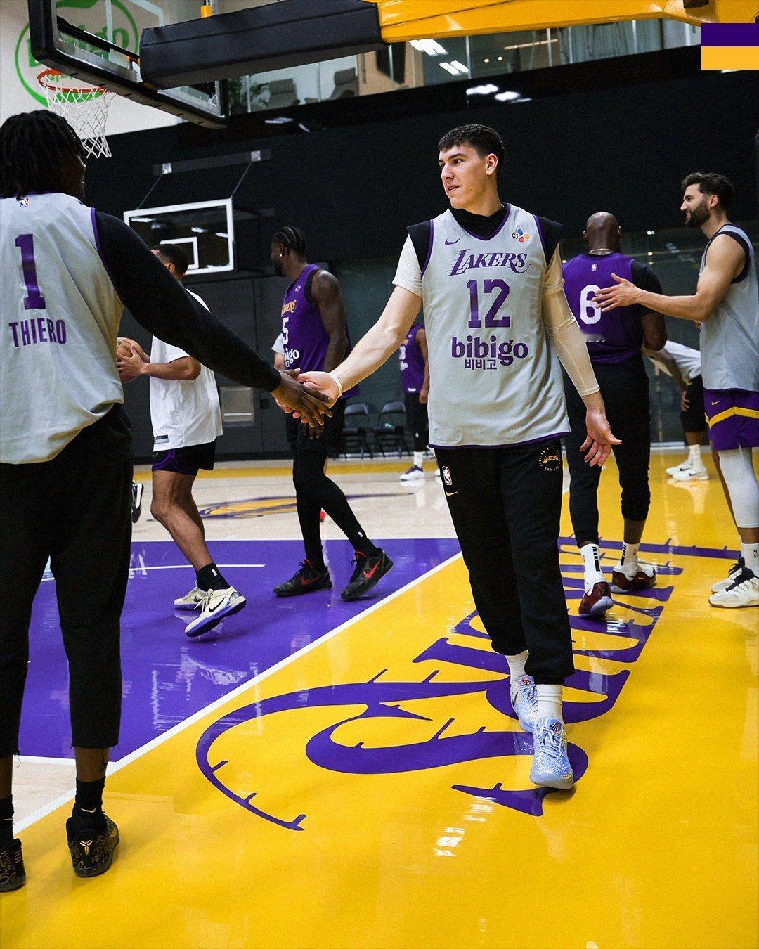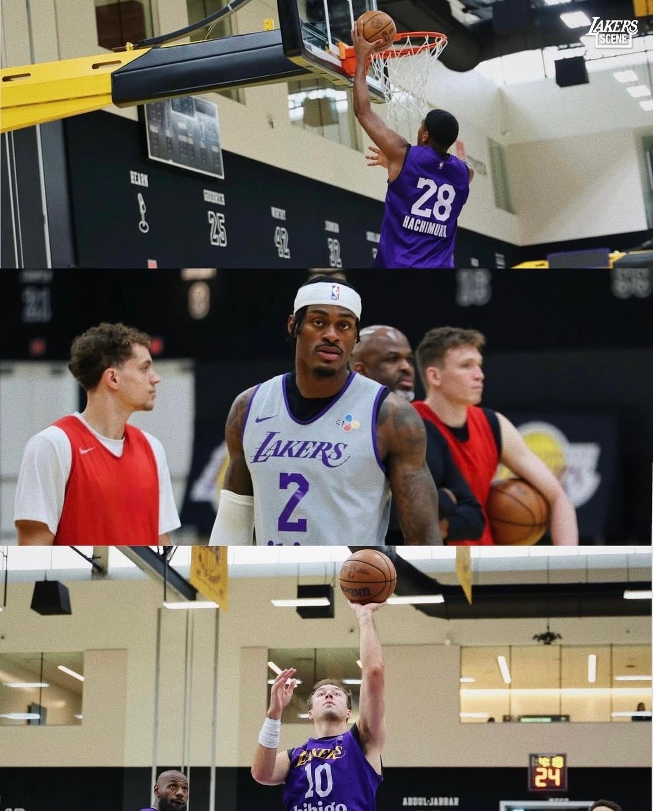今天湖人训练,大家为小尼克·史密斯和克内克特举行了小型生日派对,老将斯玛特给布朗尼、蒂耶罗和克内克特开小灶传授经验