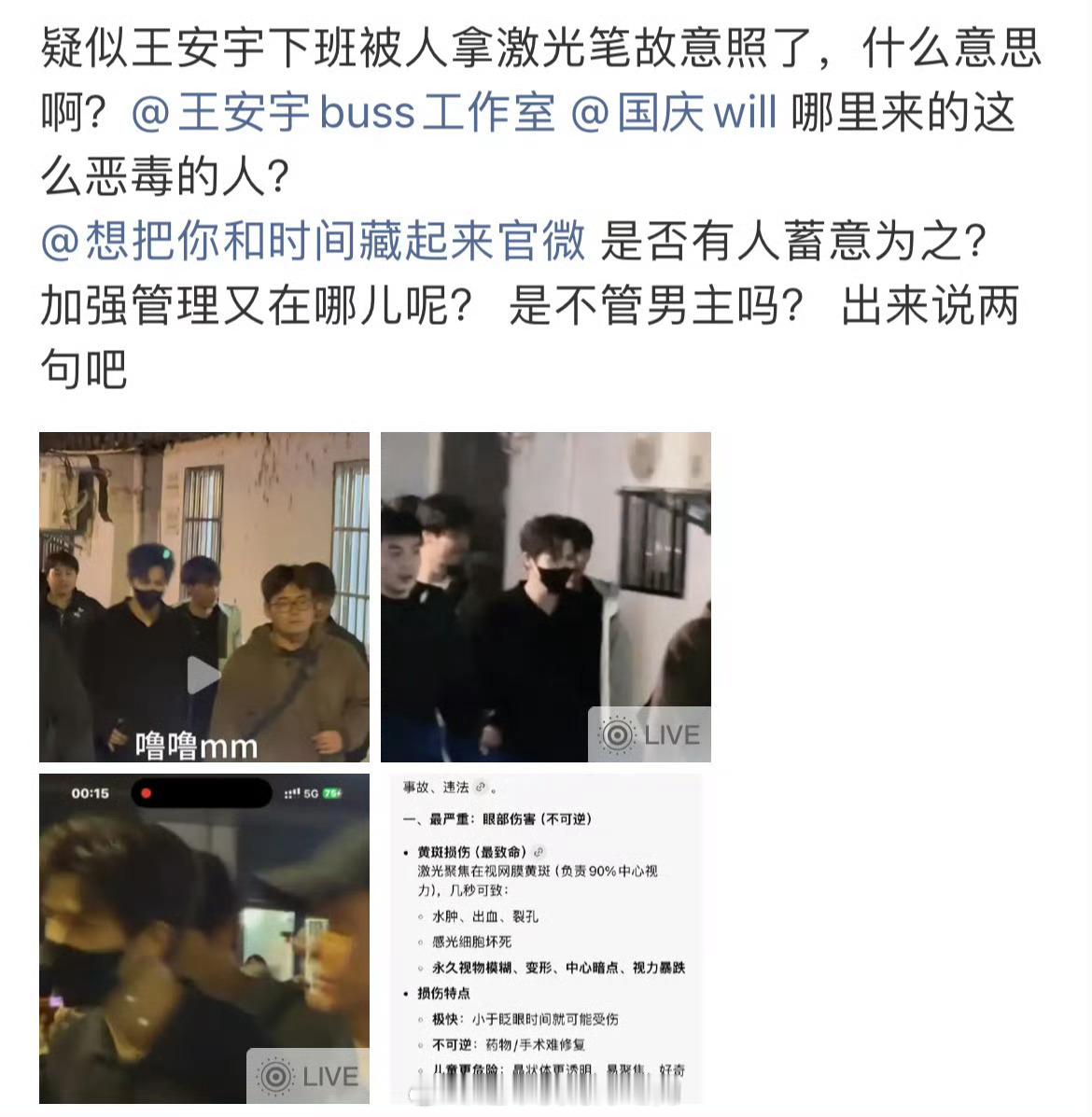 疑似有人用激光笔照王安宇眼睛了,粉丝目前wq中