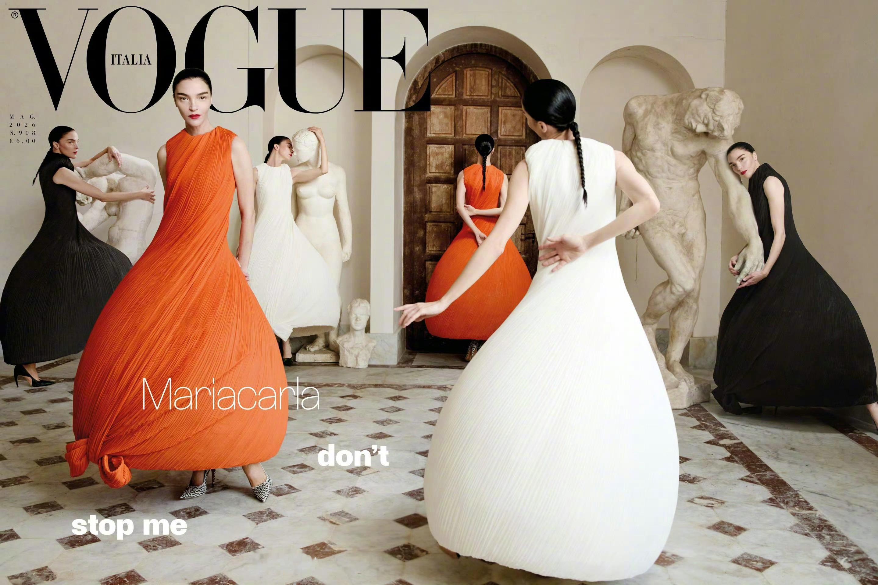 Vogue Italia May 2026 意大利版五月刊封面大片,“蛇精”女士Mariacarla Boscono 身着Dior高定“花瓶裙”登封,大片于巴黎市郊的Villa des Brillants 罗丹故居取景,内页还呈现Chanel高级手工坊系列、以及Saint Laurent、Balenciaga等品牌新季时装。一人“分身”的视觉还是很有趣。摄影: Carlijn Jacobs 封面大赏