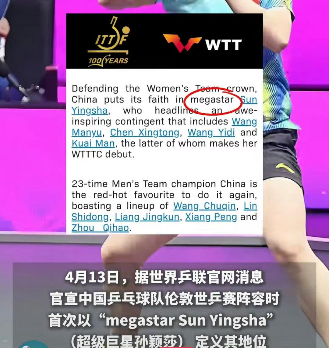 megastar孙颖莎“🏆冠军影响力持续破圈,世界乒联认证Megastar (超级巨星), 商业底盘稳固。”🔥🔥🔥创造历史的首位世界杯女单三连冠,乒乓球项目国际官方认证的唯一【Megastar】超级巨星孙颖莎,真正打破圈层,人气、成绩、国际影响力、商业价值全维度TOP☝🏻白象品牌代言人孙颖莎