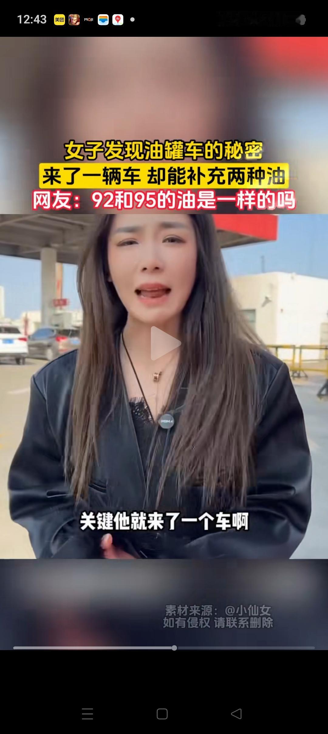 看到这个美女质疑为什么只来了一个油罐车,却能同时加92和95。