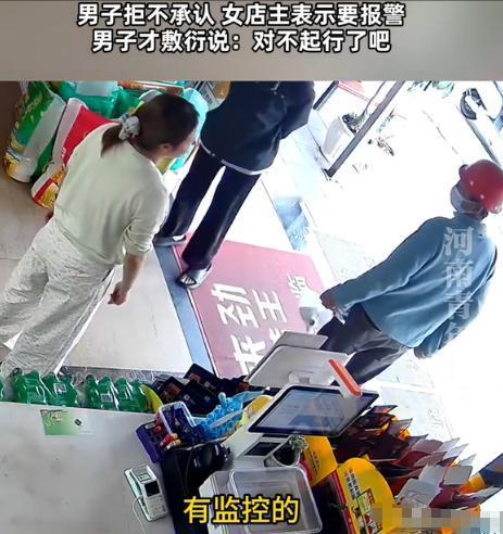 僵持片刻后,男子终究没敢再硬气,皱着眉头,满脸不情愿地憋出一句道歉,语气敷衍又不耐烦,丝毫没有真诚认错的态度,仿佛只是在应付女店主,嘴里念叨着,算是默认了自己故意碰撞的行为,只想尽快摆脱女店主的纠缠。