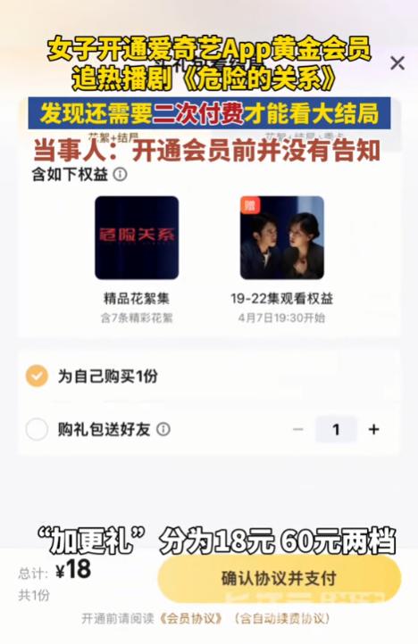 湖北武汉,一女子为了追剧,忍痛花几十元开通了某平台的黄金会员,特意确认了能畅享全集才付了款。前19集看得丝滑无比,谁料点开第20集瞬间被卡住。想继续往下看,要么等更新,要么再掏18元或60元买“加更礼”。女子气得找客服投诉,客服的回复让女子快气吐血了。