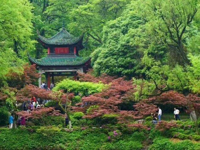 爱晚亭在湖南岳麓山清风峡间,为中国四大名亭之一。此亭始建于清乾隆五十七年,最早叫红叶亭。后湖广总督毕沅取杜牧“停车坐爱枫林晚,霜叶红于二月花”诗意,更名为爱晚亭,这样一来意境顿生。亭体古朴雅致,碧瓦红柱,与山林相映成趣。上世纪四十年代重修爱晚亭,湖南大学校长李达写信请毛主席题写亭名,毛主席爽快应允,挥毫写下"爱晚亭",现在的爱晚亭兼具人文底蕴与红色印记,秋来枫林尽染,引得游人驻足,尽显湖湘山水与文脉之美。