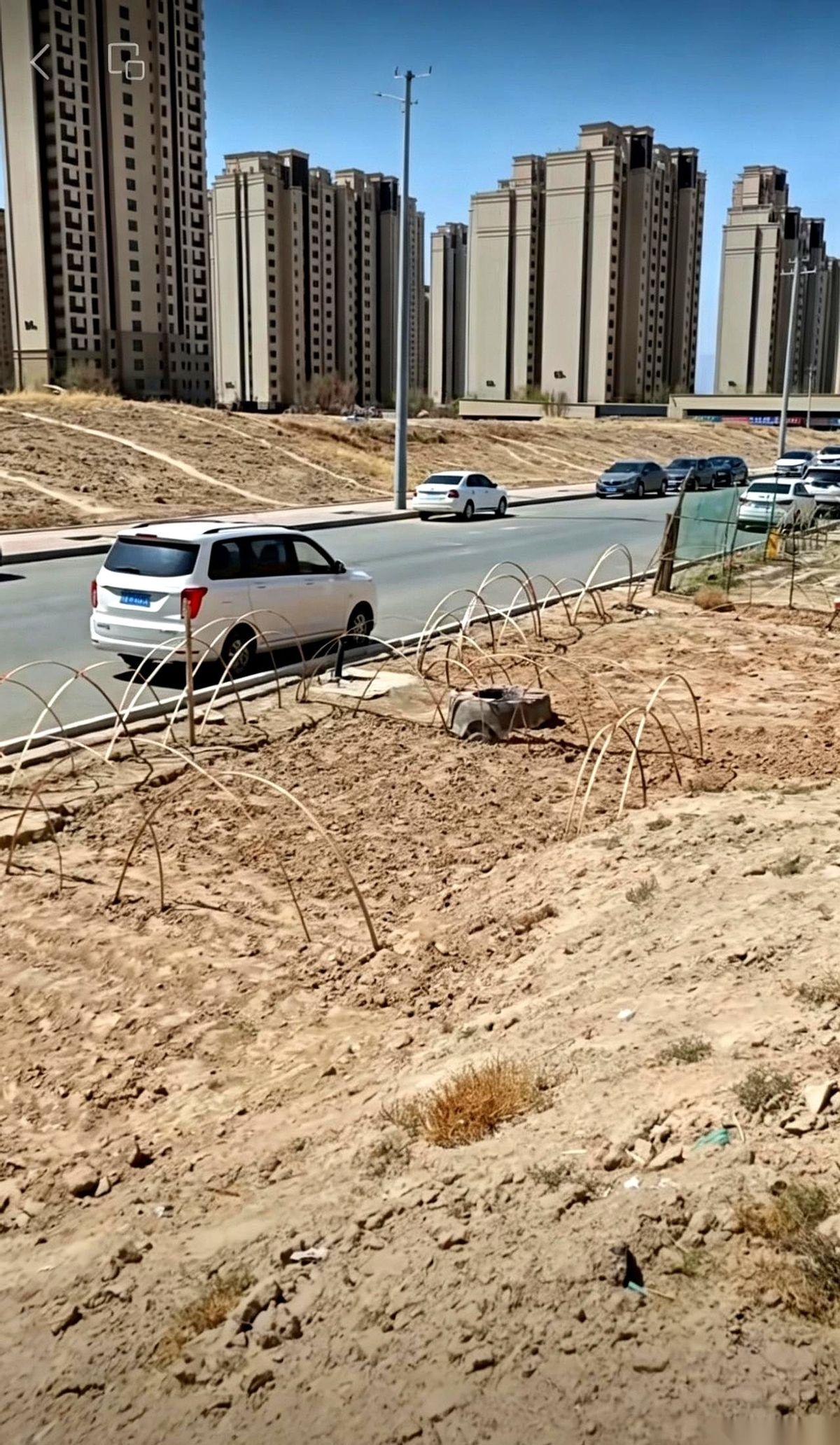 这里是保利领秀山。放眼望去,原本该是满目苍翠的绿化带,实际上却是大片大片的秃岭。土是干的,风一吹,满嘴都是沙子。
