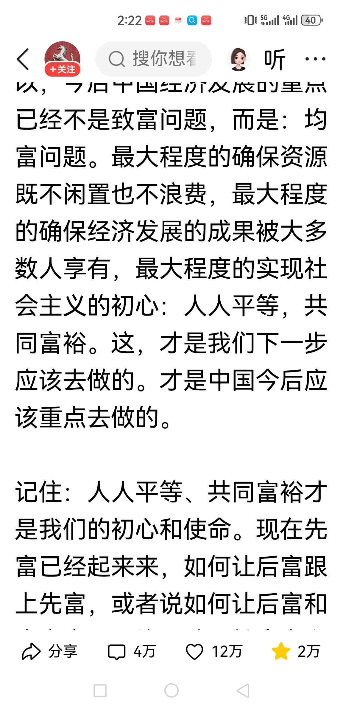 人人平等、共同富裕才是我们的初心和使命。现在先富已经起来来,如何让后富跟上先富,或者说如何让后富和先富实现平均。才是社会主义中级阶段应该去做的!……