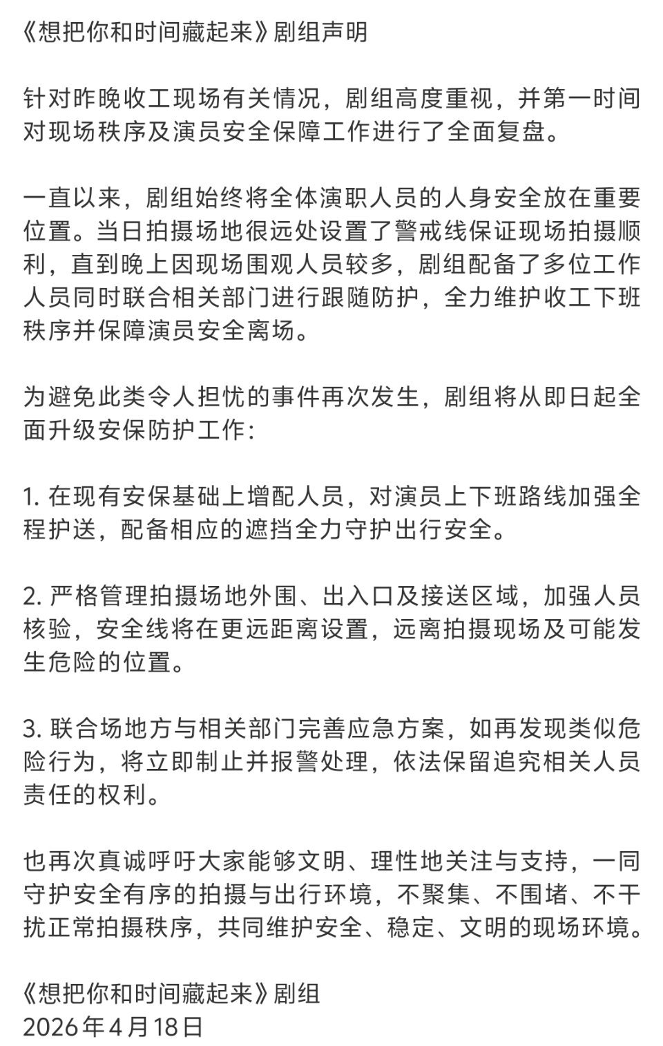 王安宇疑被激光笔照射剧组需担责加强管理加到哪里去了??!你们就是这么保护演职人员人身安全的?!这个回应更是敷衍的没边,全篇连一个演员王安宇的名字都没有你最好说到做到!!