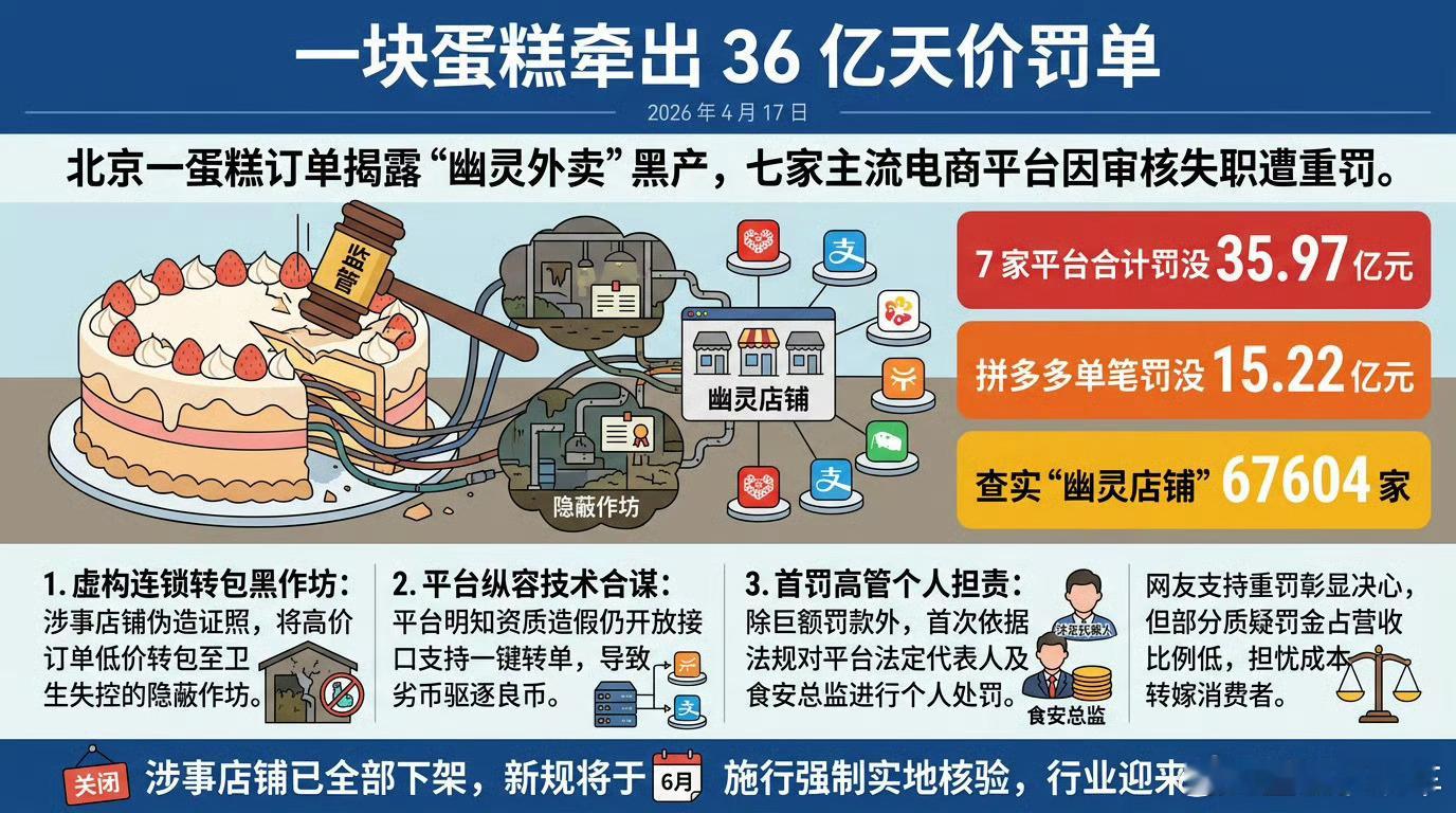 一个蛋糕引出7平台35.97亿元罚单这些平台该罚!这样也能入驻,找不到一块蛋糕幽灵商家,用户在外卖平台高价下单后被低价转包给小作坊,食品安全无保障,还损害消费者利益,大家以后点外卖 看清楚,还是得选连锁的有实体的。