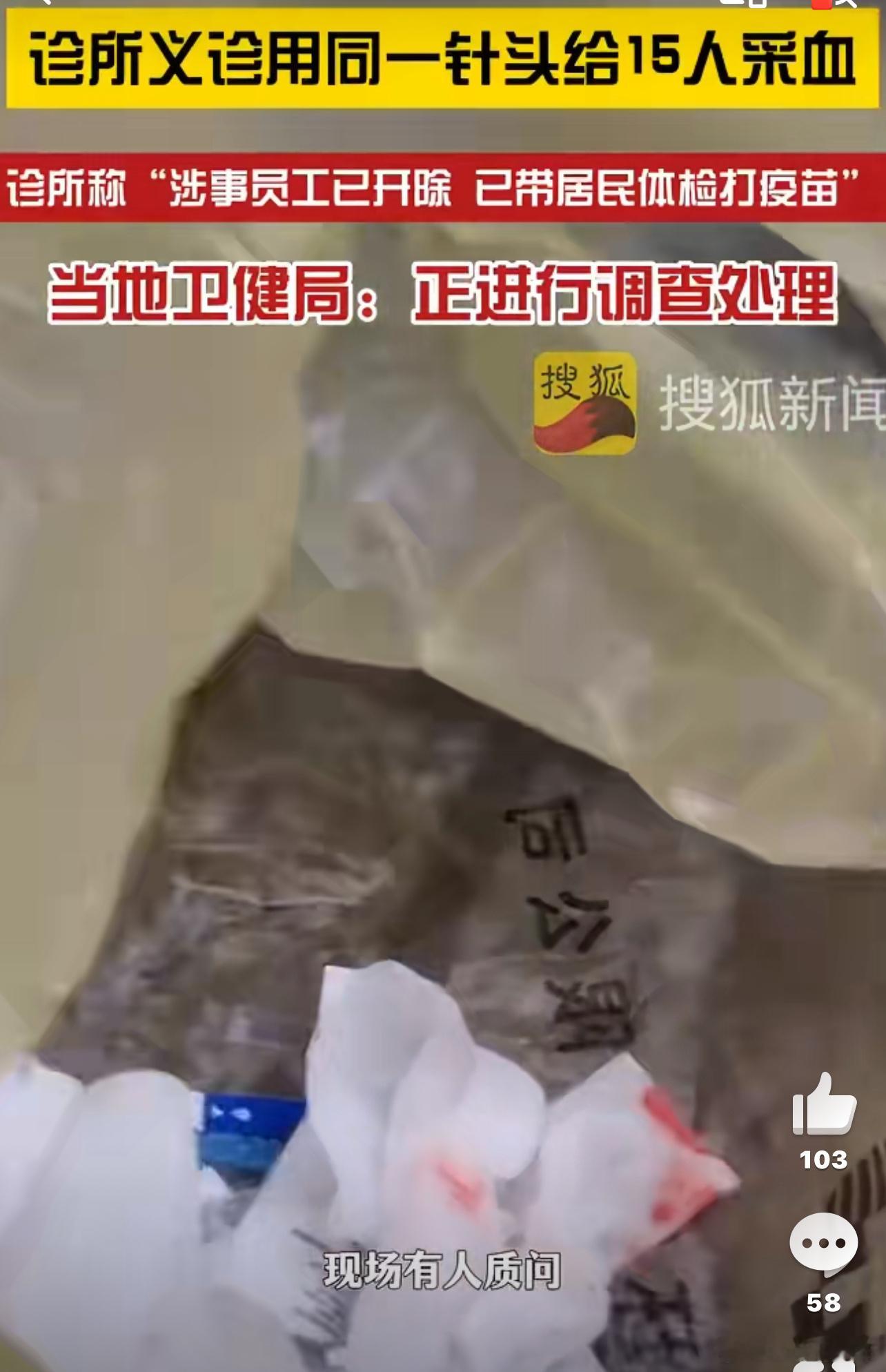 一个针头给多人采血员工被开除义诊用同一个针头给15个人采血,这很容易造成交叉感染