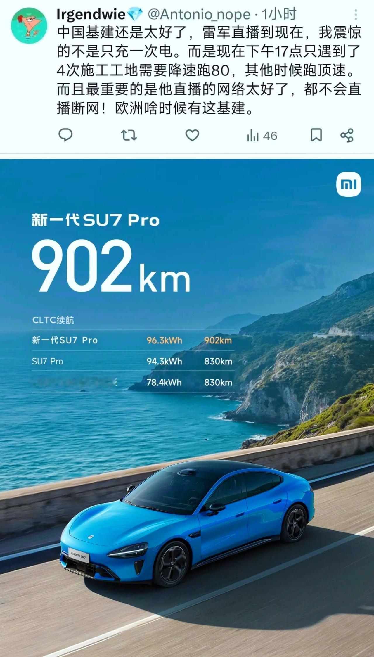 我完全信服小米的三电,哪怕雷军昨天不做那个1252公里的京沪高速续航我都服。但他不服。