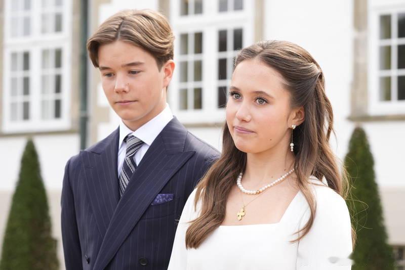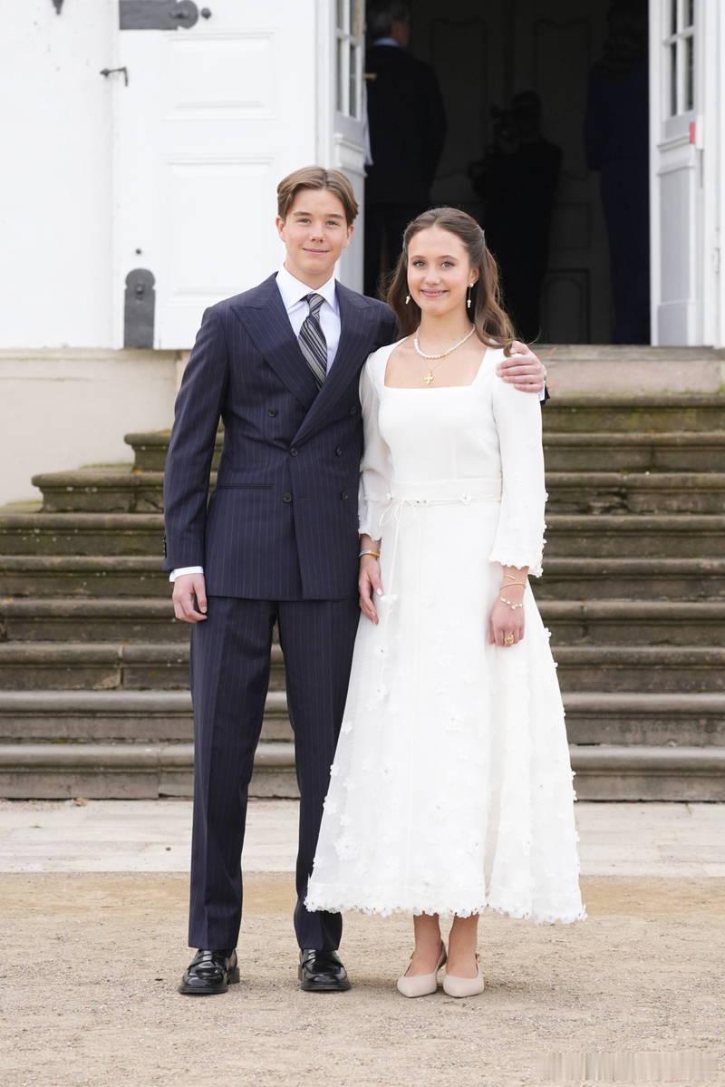 新闻 2026.4.18 丹麦文森特王子和约瑟芬公主在弗雷登斯堡宫教堂举行坚信礼,约瑟芬的小白裙真的很应景,很养眼的两兄妹。