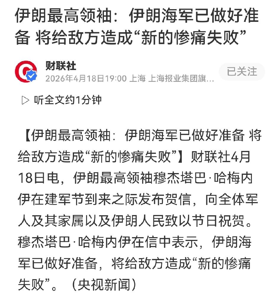 伊朗最高领袖穆杰塔巴·哈梅内伊释放强硬信号,直言伊朗海军已做好准备,将给敌方带来“新的惨痛失败”,这无疑给急于停战的特朗普再添一记重击。