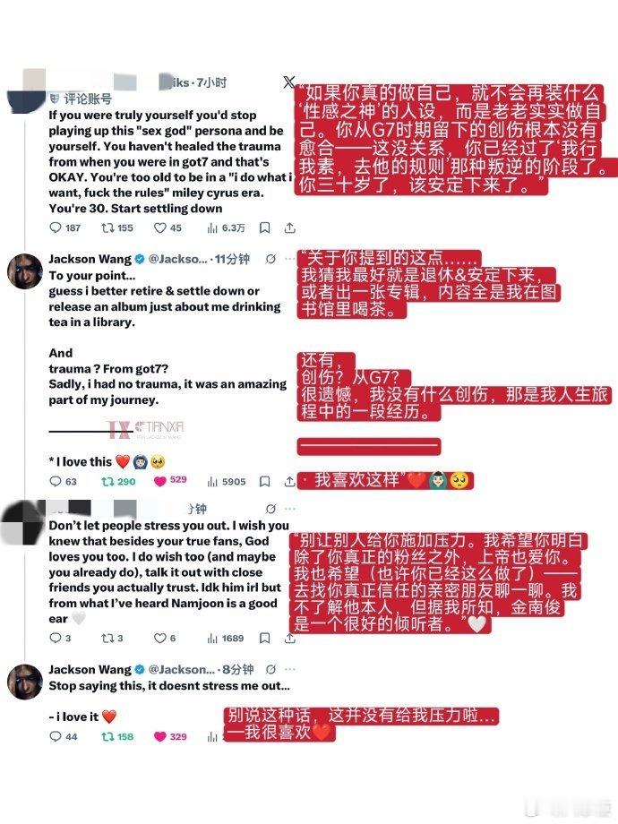 王嘉尔在推特怼黑粉王嘉尔没有惯着黑粉的义务 太解气了🔥 王嘉尔推特硬刚黑粉全程高能,有理有据不撒泼,金句直接封神:“就算我72岁了,我也会一直盯着你”“你凭什么定义我?”,不惯着任何无端指责,这才是成年人该有的硬气!