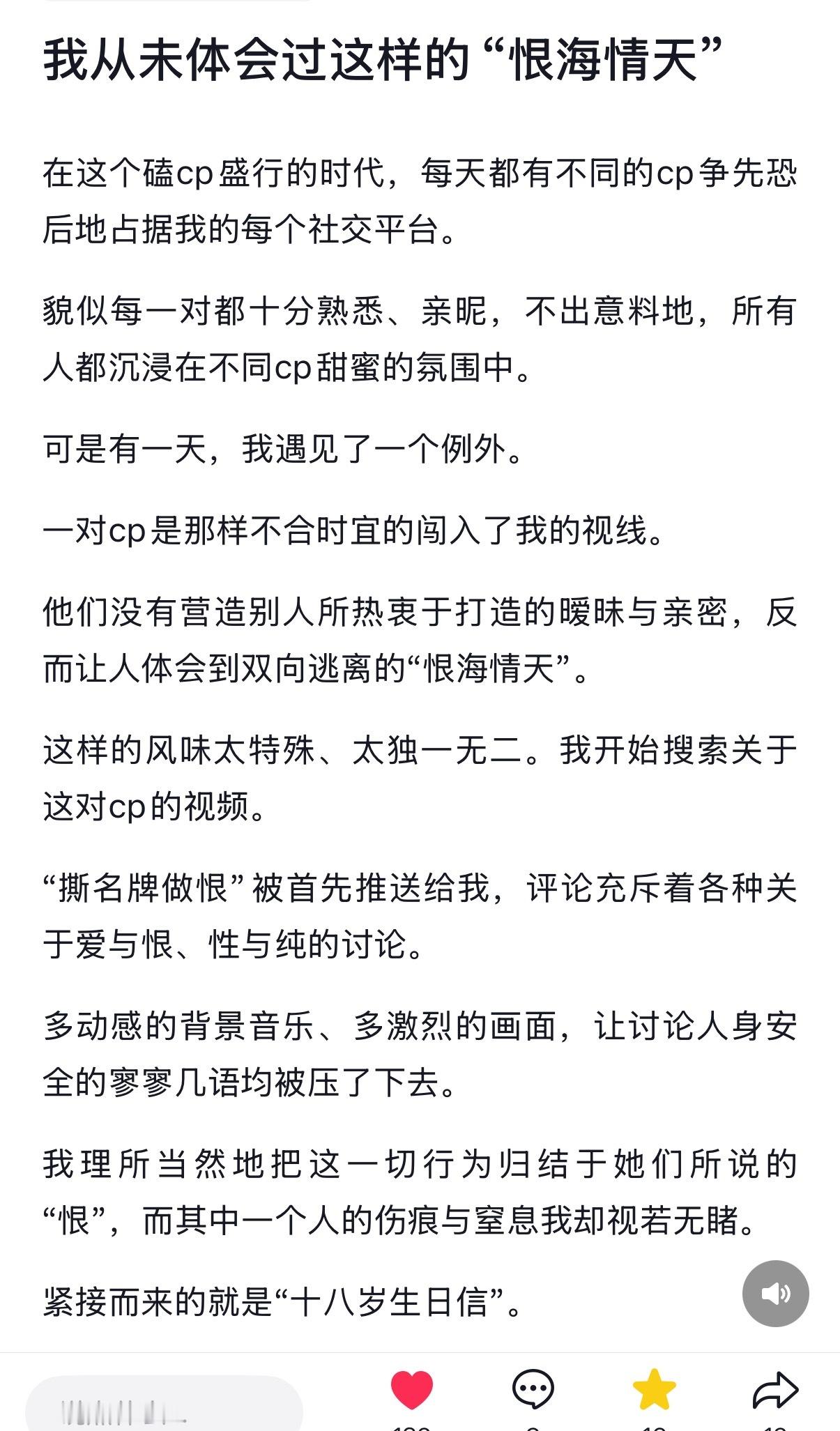 你们根本不知道这篇文章配上那位老师的bgm让我哭的有多惨这对cp给另一方辅了多少酶,就给我孩子倒了多少油……
