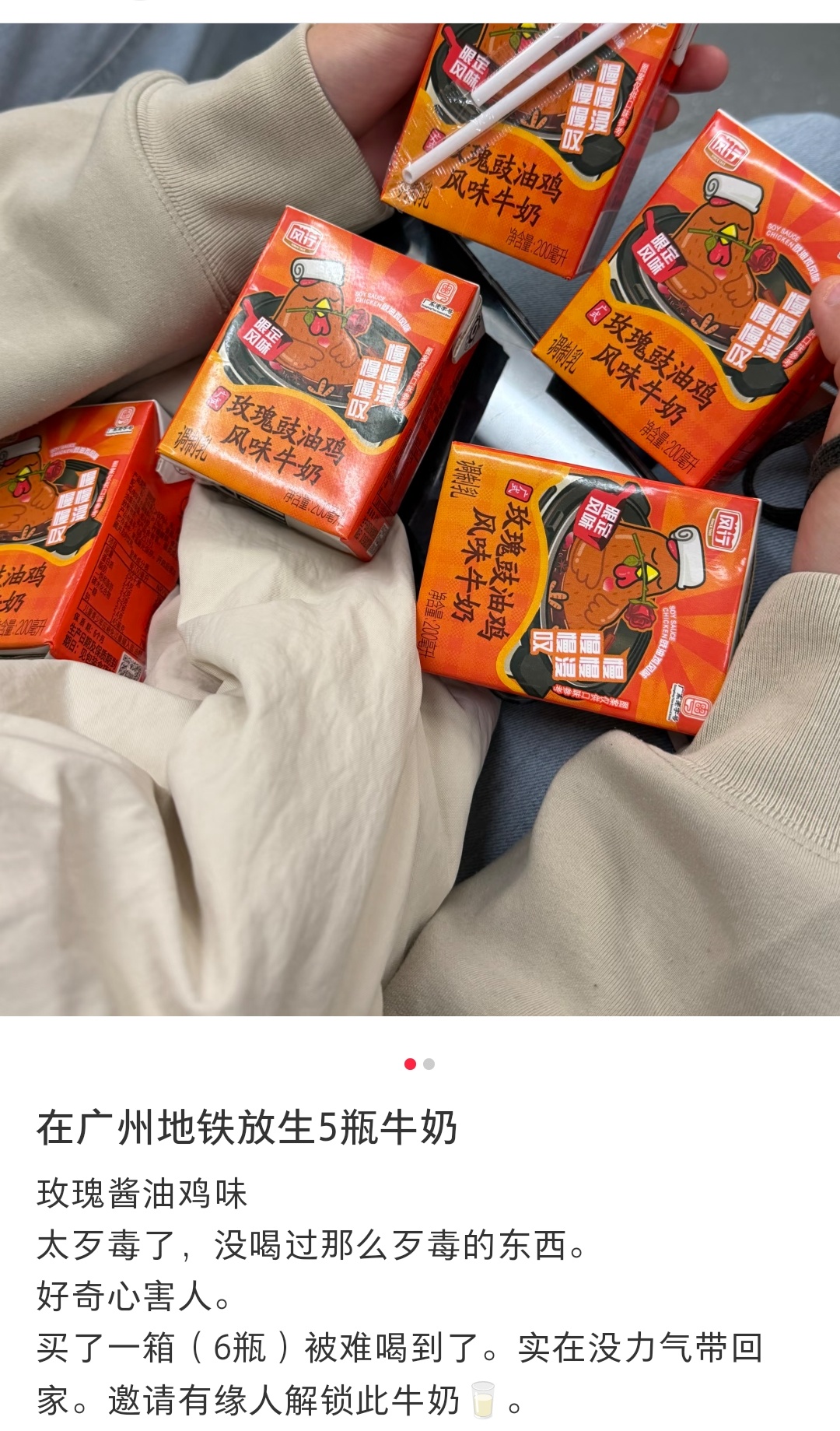 竟然有这么多猎奇口味的牛奶 玫瑰豉油鸡味,姜葱白切鸡味,把子肉味