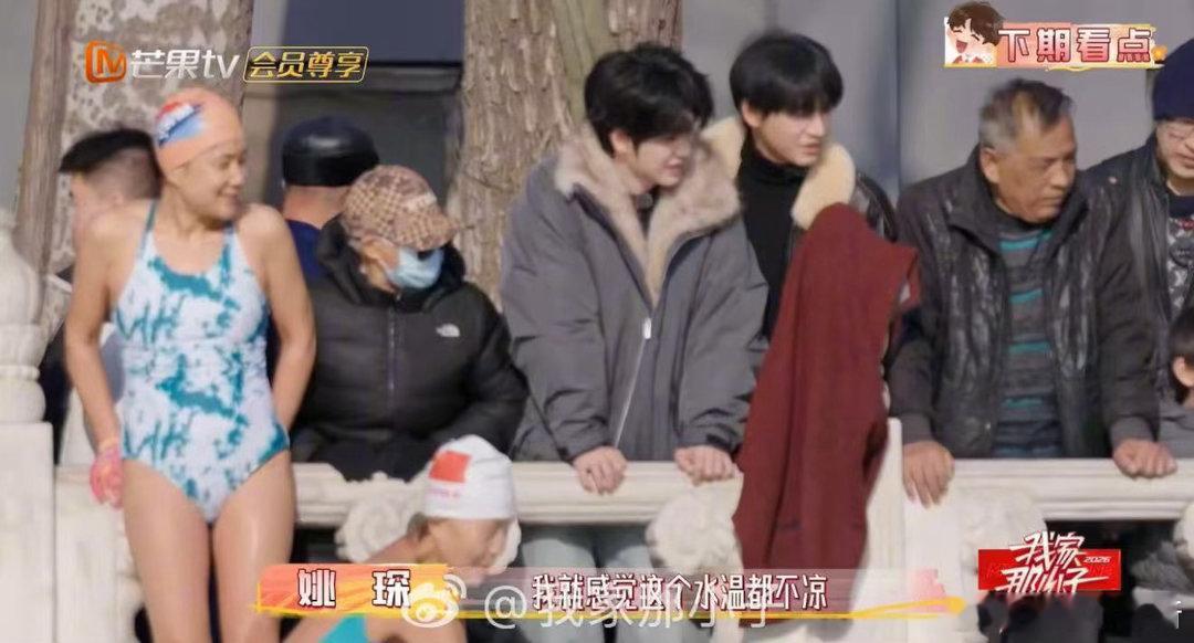 我家那小子姚琛与黄誉博挑战冬泳 姚琛刚在节目里大方换衣,现在又去冬泳。这是要把“身体好”这个人设焊死。黄誉博陪着他一起疯,确实是真朋友。