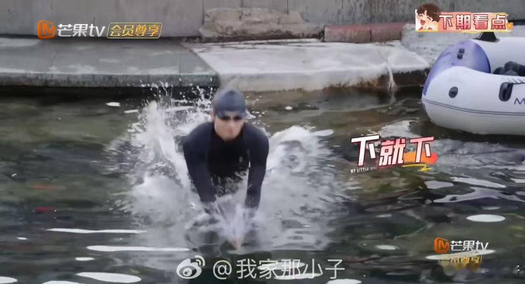 我家那小子姚琛与黄誉博挑战冬泳 姚琛刚在节目里大方换衣,现在又去冬泳。这是要把“