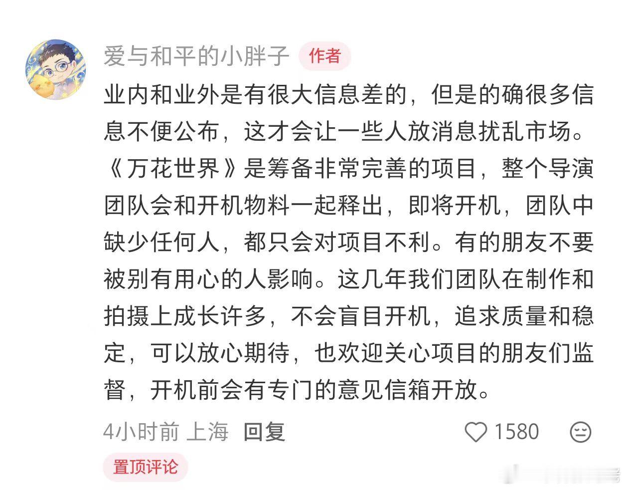 万花世界5月开机 这么大投入的剧难怪粉丝担心,回应倒是很及时,信息差这个也确实,
