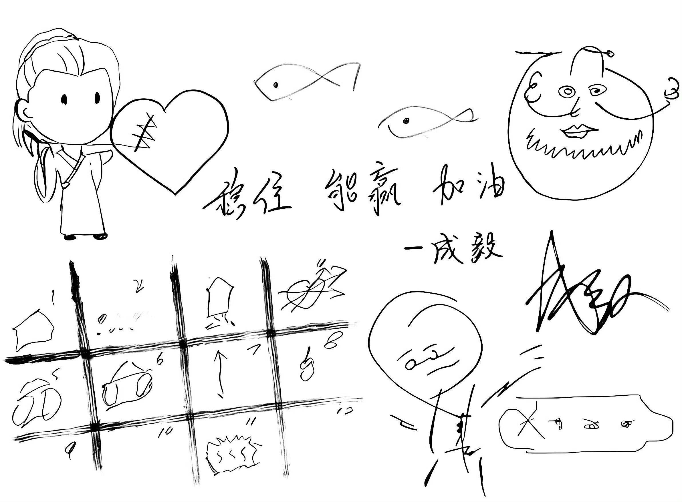 啊……这些都是成毅画的画,怪不得是抽象派!我只对脑劈叉和小鱼有印象,可以当成毅不明显头像了吧