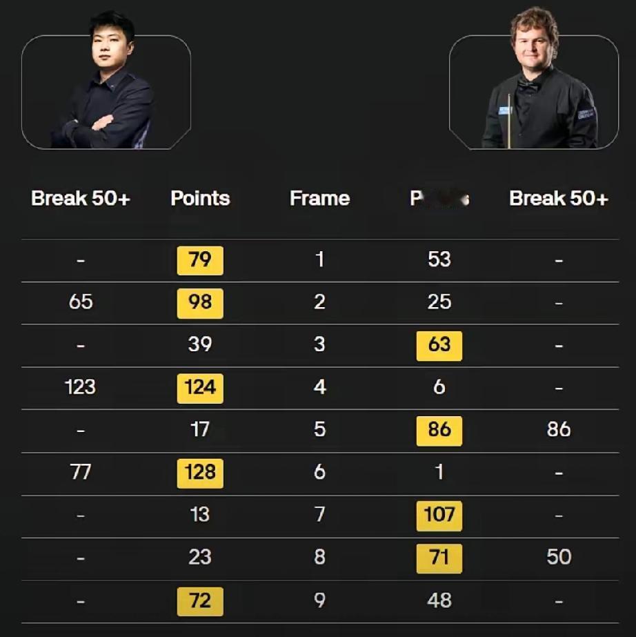 赵心童9局球,轰出一杆过百123分,2杆50+。
