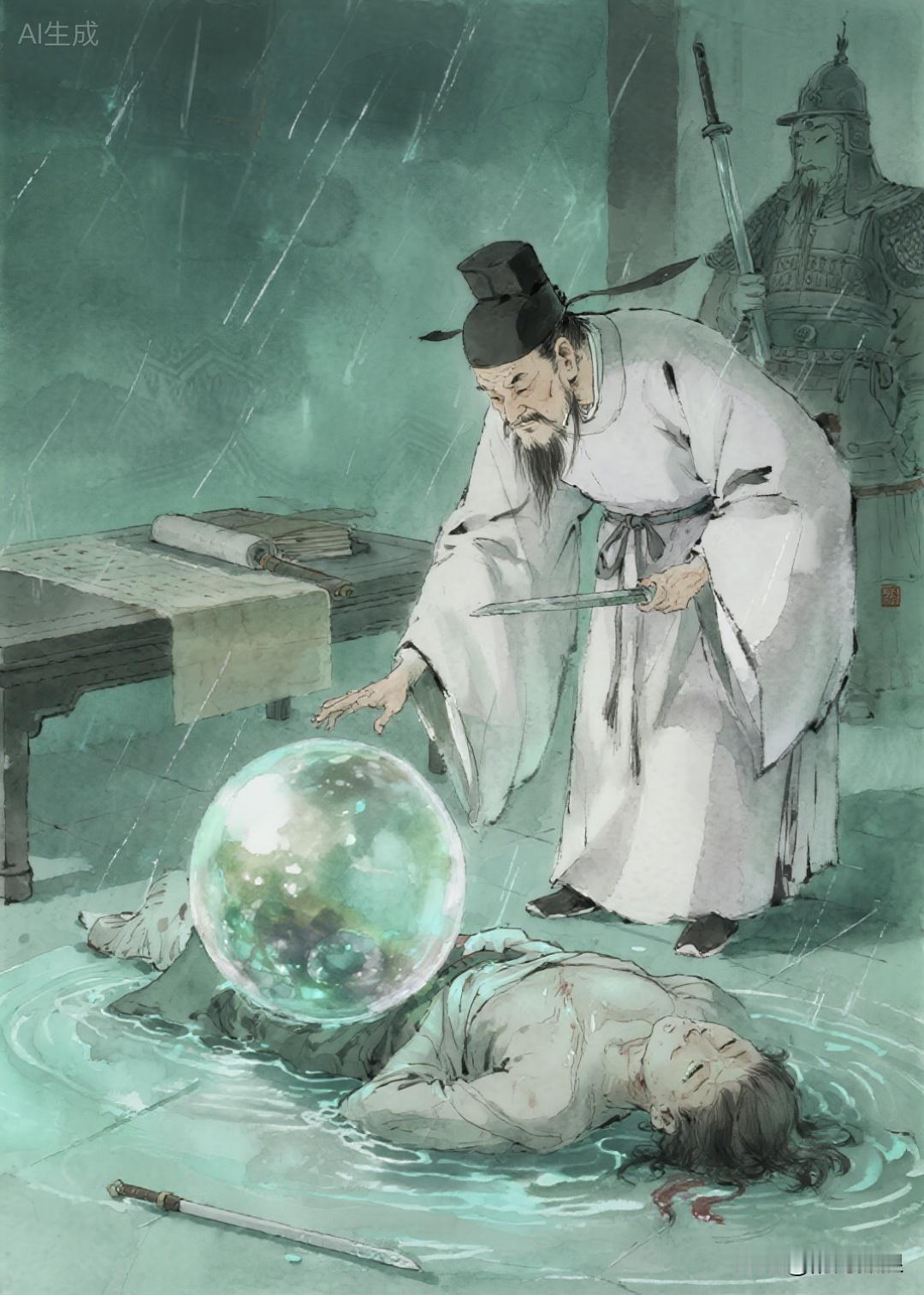 雨正下的起劲,一个大水球从天而降,落在了大堂之上。众人哪还顾的上审案了,都来看这水球。水球奇妙之处在于落地而不散开。杨参藩令众衙役上前,用刀好像剥洋葱一样将水球层层剥开,发现水球中裹着一个昏迷不醒的人。