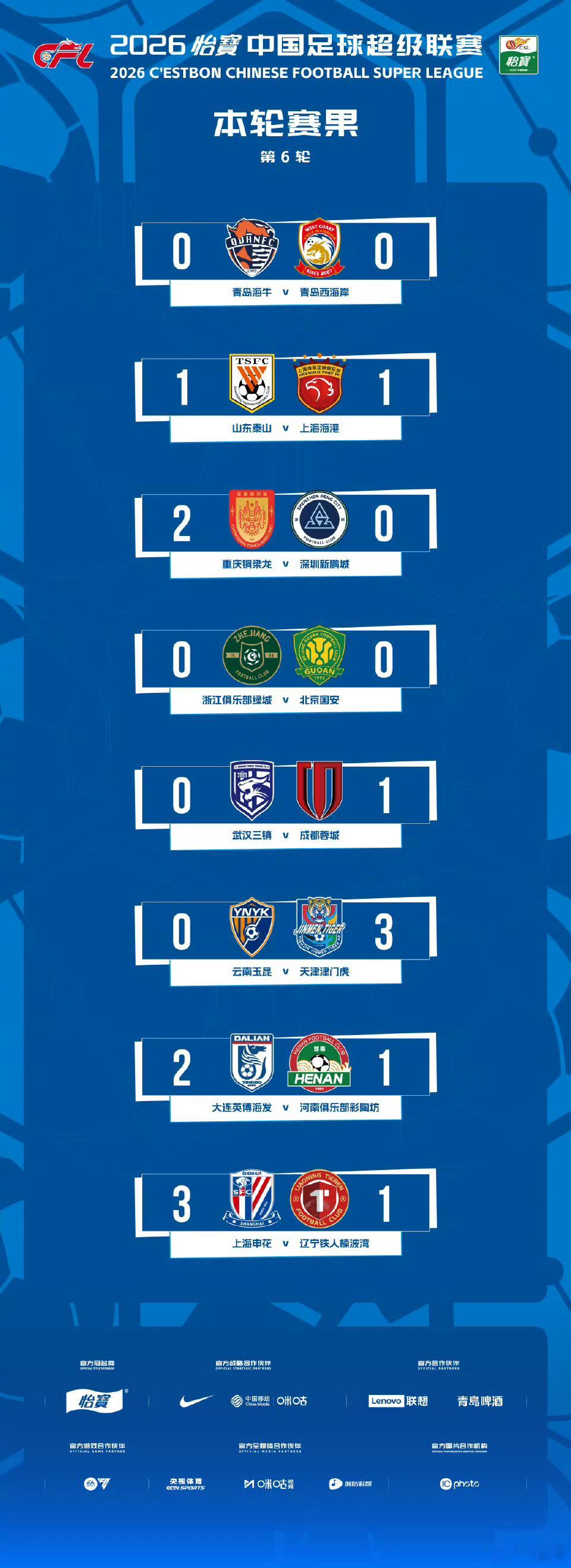 上海申花vs辽宁铁人申花三连胜。排名来到第八。下面是本轮全部赛果和完整积分榜。上海申花