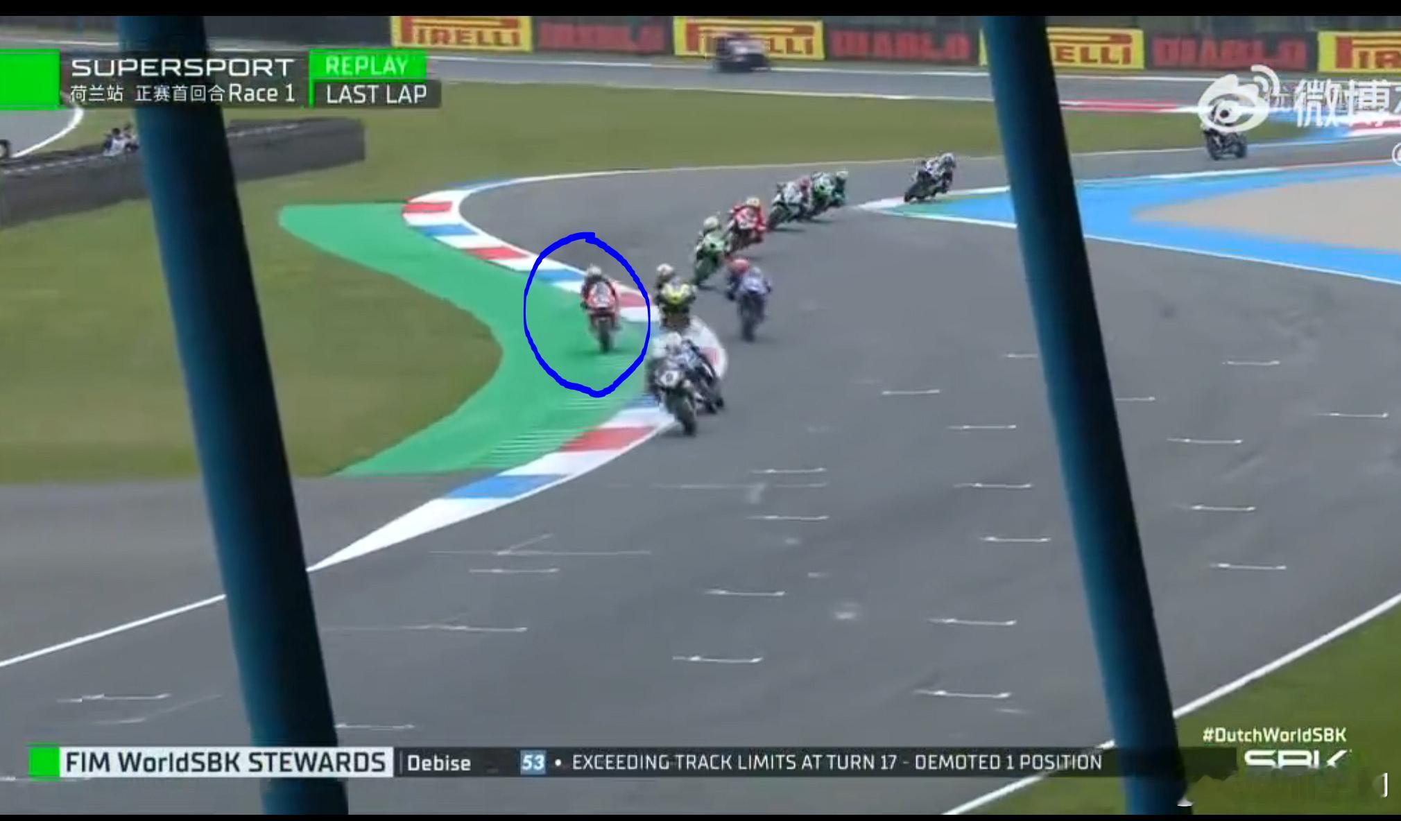 张雪机车被判罚第四名 我直接把犯规的一幕截屏出来了(图1),线路违规,有些近道不