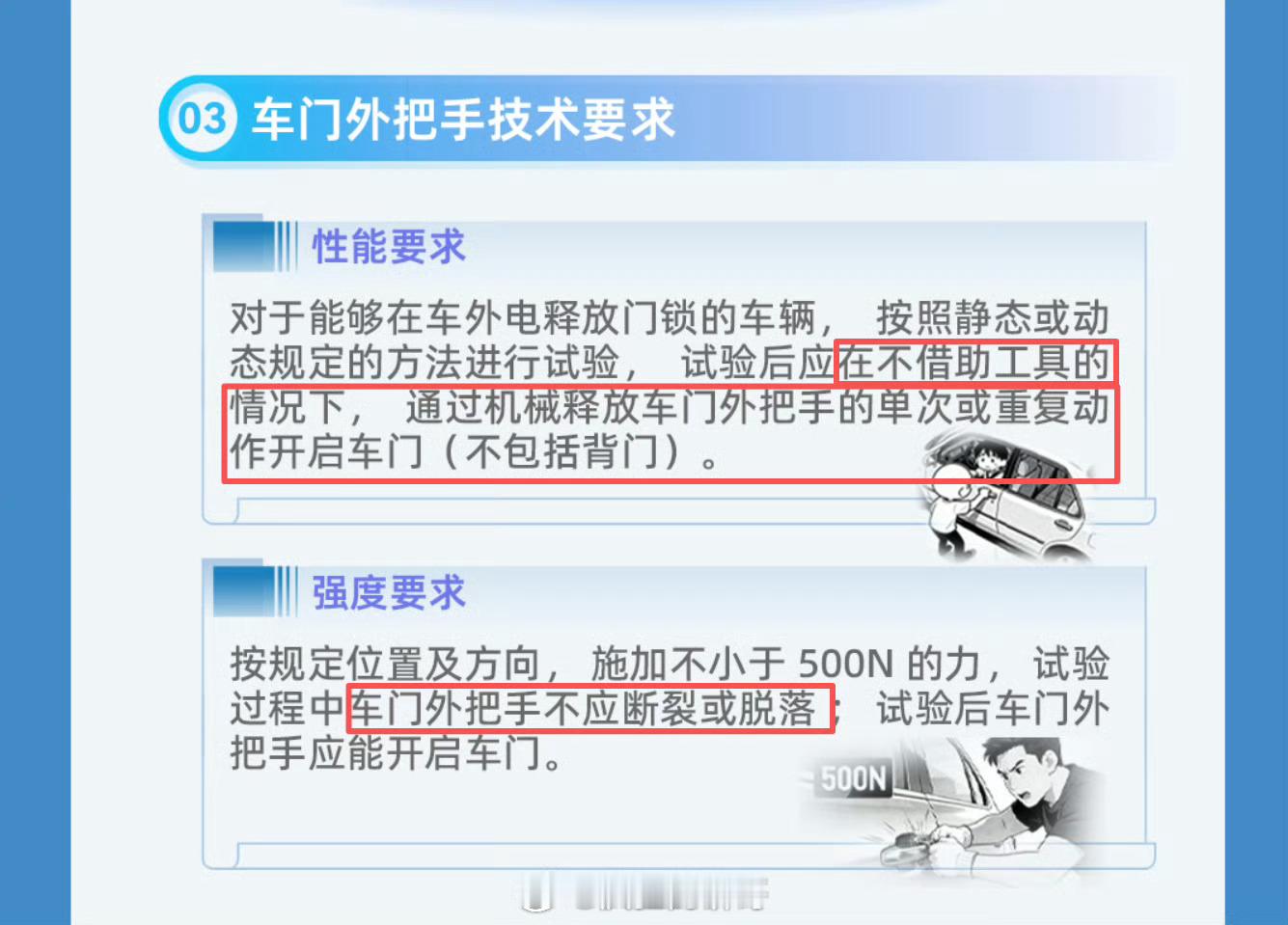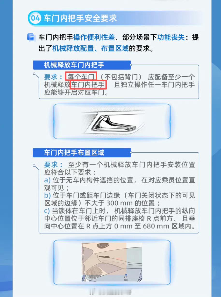 汽车门把手国家级的升级,将在 2027 年 1 月 1 日实施,而且是强制性国家标准。