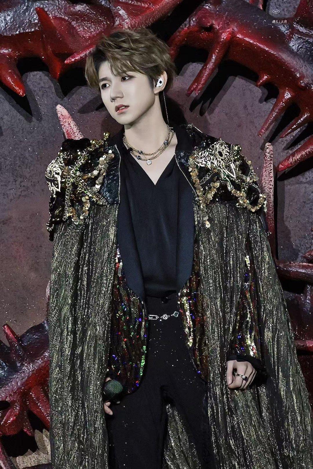 王源泡泡岛音乐节披风造型 披风被风吹起来那一下,我承认我尖叫了。王源这舞台感,越